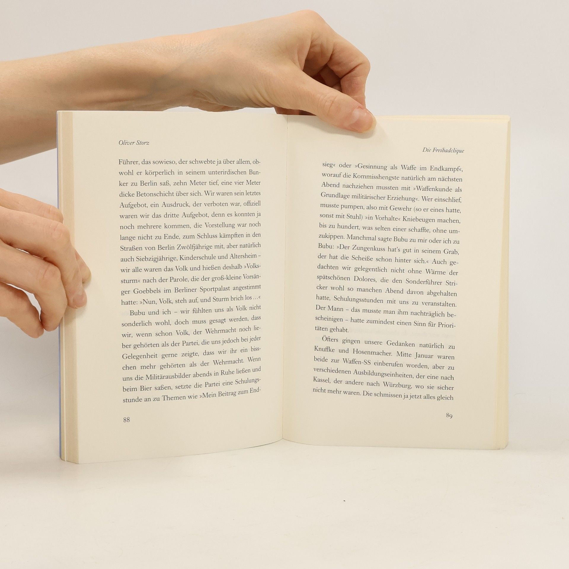 Irgendwo im Schwäbischen: Knuffke, Bubu und die anderen aus der Freibadclique sind fünfzehn, und das verordnete Heldentum hat für sie im Sommer 1944 keine Bedeutung mehr. Sie sehnen sich nach Swing und Bigband-Sound, nach Lore im roten Badeanzug und dem Ende des Marschierens. Ungemein lebendig erinnert sich Oliver Storz an einen denkwürdigen Sommer am Ende des Kriegs und die Wirren der Zeit danach.