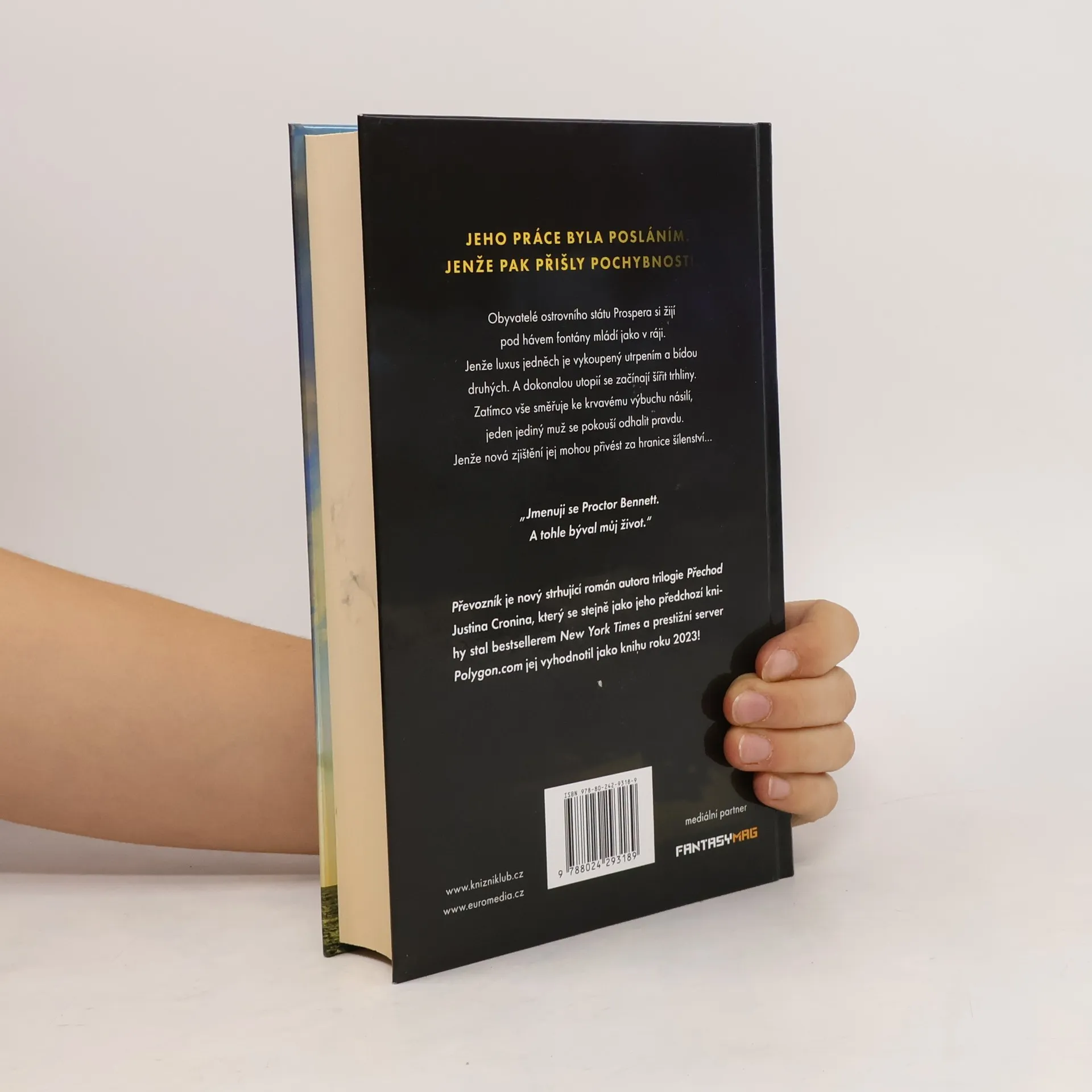 Od autora bestselleru New York Times Přechod přichází strhující nový román o skupině přeživších na skryté ostrovní utopii – kde pravda není taková, jak se zdá. Souostroví Prospera, založené tajemným géniem, leží skryto před hrůzami zhoršujícího se vnějšího světa. Šťastlivci si zde užívají dlouhé, plnohodnotné životy, dokud monitory zapuštěné v jejich předloktí, které mají měřit jejich fyzické zdraví a psychickou pohodu, neklesnou pod 10 procent. Poté se sami odeberou do důchodu a vydají se na plavbu trajektem na ostrov známý jako Rodiště, kde se jejich selhávající těla obnoví, vzpomínky jsou vymazány a oni jsou připraveni znovu začít žít naplno. Proctor Bennett je převozník, který ohleduplně provází lidi procesem odchodu do důchodu – a když je to nutné, donutí je k tomu. Ale s Proctorem není všechno v pořádku. Za prvé, snil – což je údajně nemožné. Za druhé, jeho procento monitorů začalo znepokojivě rychle klesat. A pak přijde den, kdy je povolán do důchodu jeho vlastní otec, který mu před nástupem na trajekt předá znepokojivou a záhadnou zprávu...