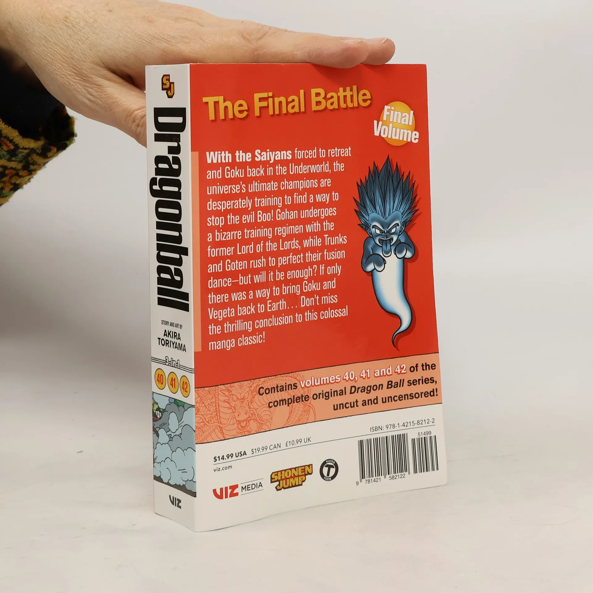 Dragon Ball introduces a young monkey-tailed boy named Goku (a wry update of the classic Chinese "Monkey King" legend), whose quiet life changes when he meets a girl named Bulma who is on a quest to collect seven "Dragon Balls." If she gathers them all, an incredibly powerful dragon will appear and grant her one wish. But the precious orbs are scattered all over the world, and Bulma could use the help of a certain super-strong boy... With the Saiyans forced to retreat and Goku back in the Underworld, the universe’s ultimate champions desperately train to find a way to stop the evil Boo! Gohan undergoes a bizarre training regimen with the former Lord of Lords, while Trunks and Goten rush to perfect their fusion dance—but will it be enough? If only there was a way to bring Goku and Vegeta back to Earth… Don’t miss the thrilling conclusion to this colossal manga classic!