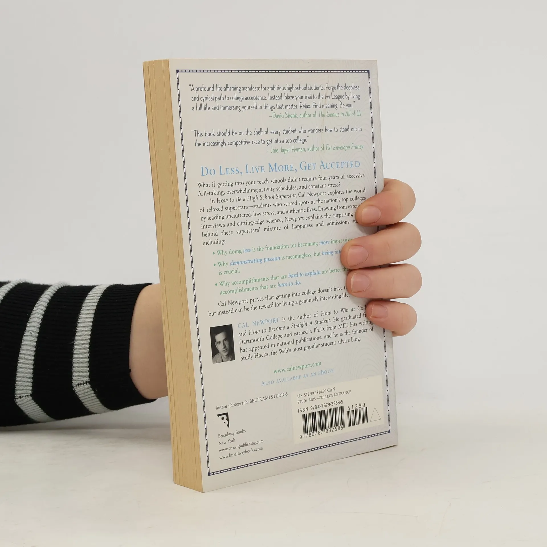 Do Less, Live More, Get Accepted What if getting into your reach schools didn’t require four years of excessive A.P. classes, overwhelming activity schedules, and constant stress? In How to Be a High School Superstar, Cal Newport explores the world of relaxed superstars—students who scored spots at the nation’s top colleges by leading uncluttered, low stress, and authentic lives. Drawing from extensive interviews and cutting-edge science, Newport explains the surprising truths behind these superstars’ mixture of happiness and admissions success, · Why doing less is the foundation for becoming more impressive.· Why demonstrating passion is meaningless, but being interesting is crucial.· Why accomplishments that are hard to explain are better than accomplishments that are hard to do. These insights are accompanied by step-by-step instructions to help any student adopt the relaxed superstar lifestyle—proving that getting into college doesn’t have to be a chore to survive, but instead can be the reward for living a genuinely interesting life.