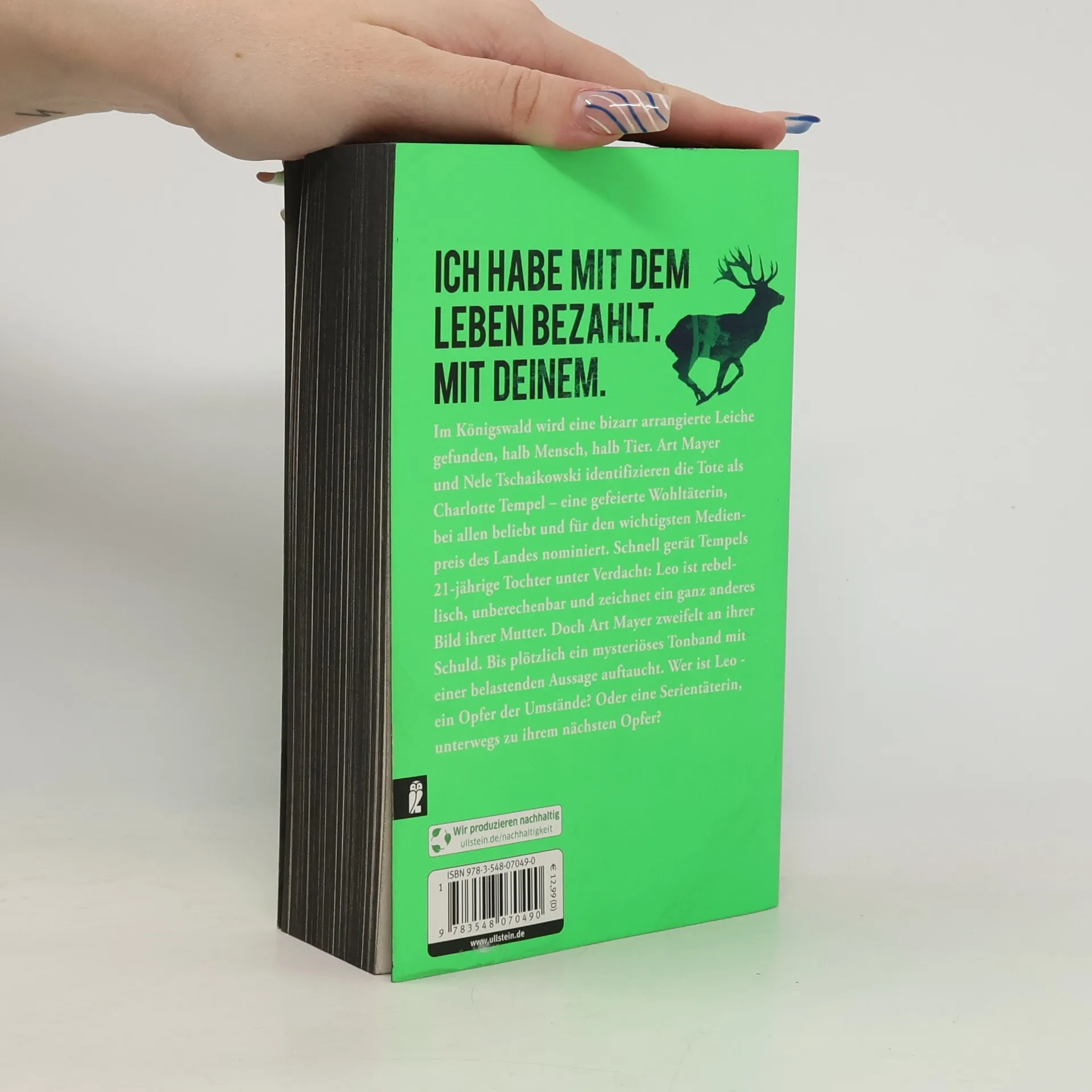Ich habe mit dem Leben bezahlt. Mit deinem. Im Königswald wird eine bizarr arrangierte Leiche gefunden, halb Mensch, halb Tier. Art Mayer und Nele Tschaikowski identifizieren die Tote als Charlotte Tempel – eine gefeierte Wohltäterin, bei allen beliebt und für den wichtigsten Medienpreis des Landes nominiert. Schnell gerät Tempels 21-jährige Tochter unter Verdacht: Leo ist rebellisch, unberechenbar und hat ein schwieriges Verhältnis zu ihrer Mutter. Doch Art Mayer zweifelt an ihrer Schuld. Bis plötzlich ein mysteriöses Tonband mit einer belastenden Aussage auftaucht. Plötzlich erscheint Leo in einem ganz anderen Licht - ist sie ein Opfer der Umstände? Oder eine Serientäterin, unterwegs zu ihrem nächsten Opfer? Wer den Thriller des Jahres sucht, muss Raabe lesen.