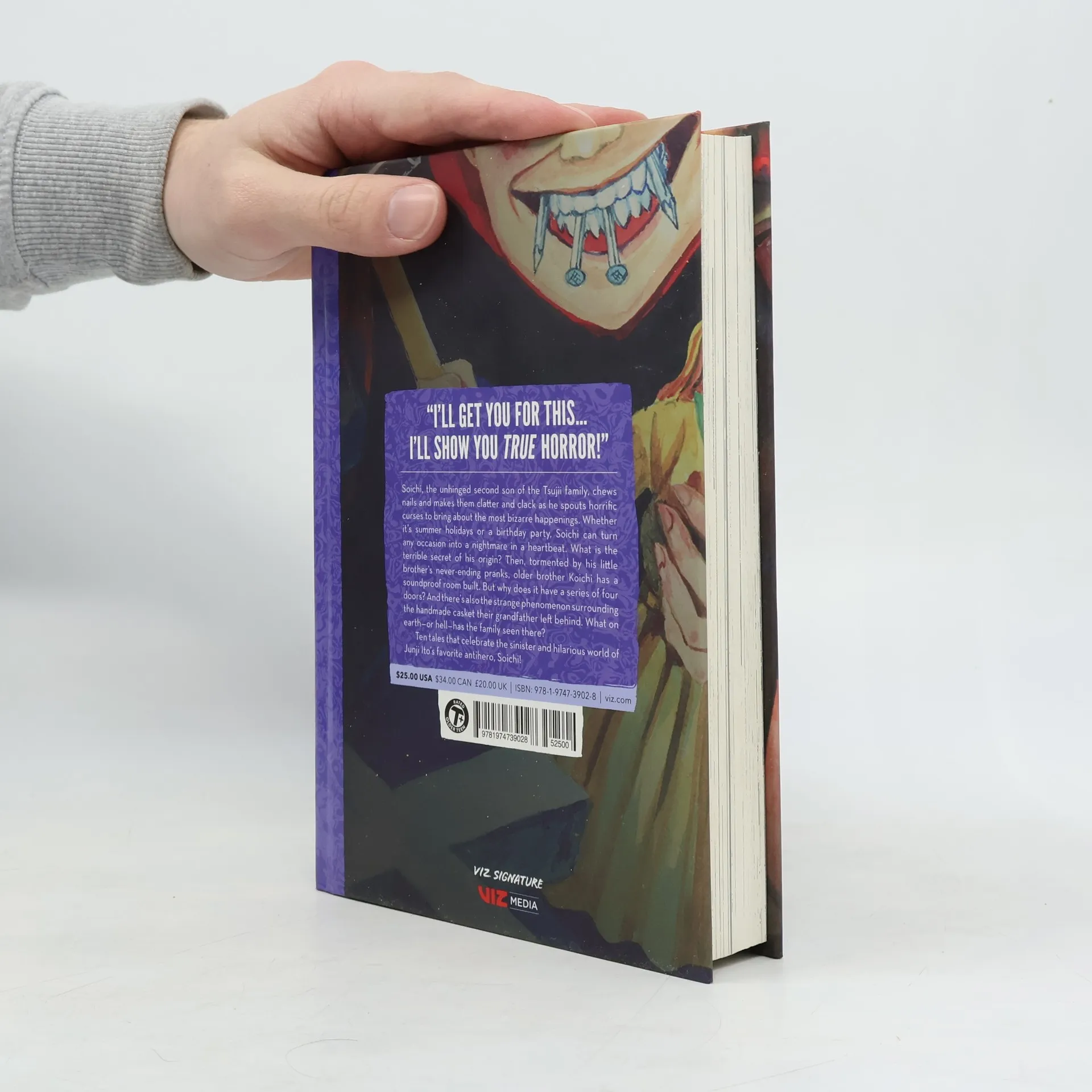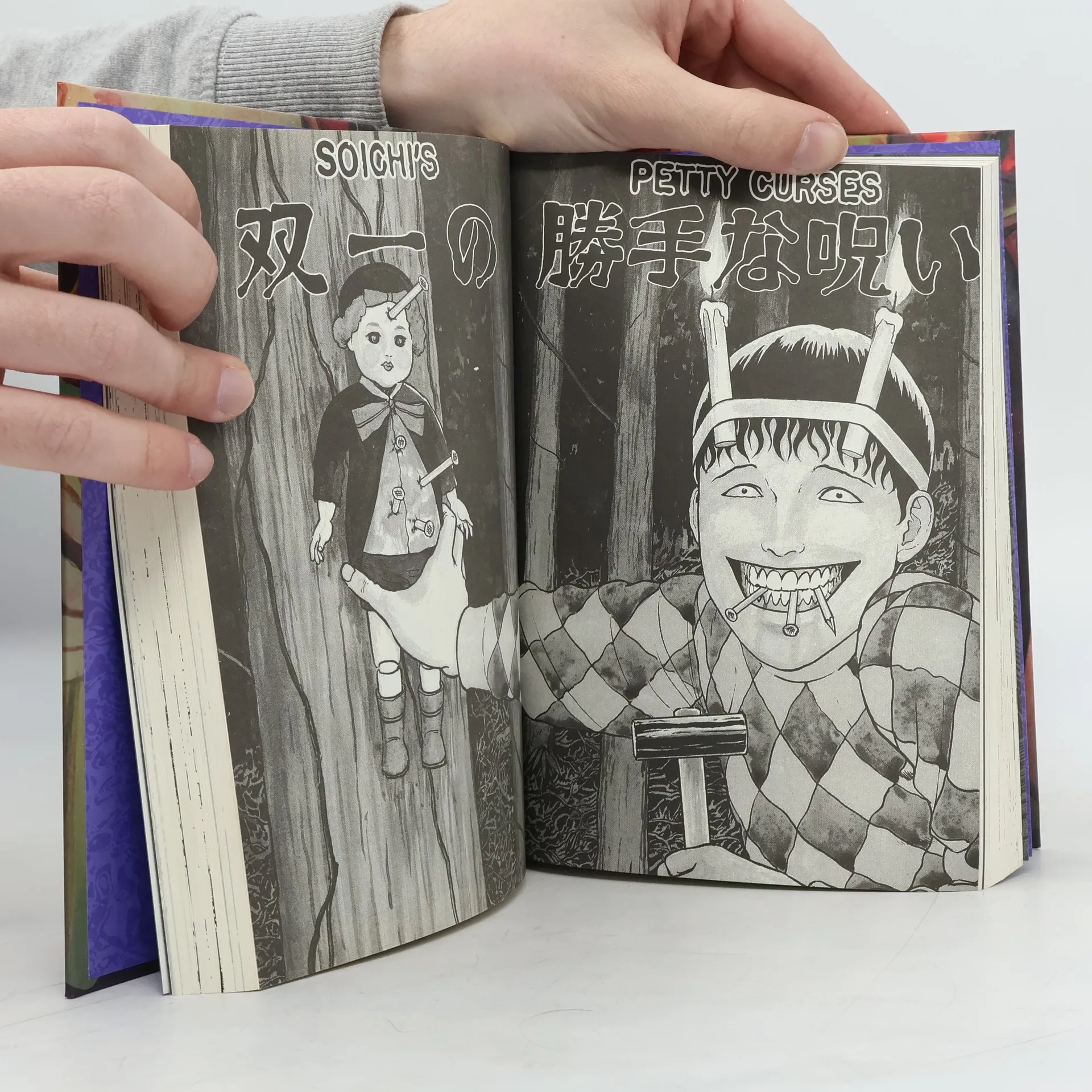 A collection of tales featuring Soichi, the uncanny and hilarious hero of the Junji Ito world! “I’ll get you for this… I’ll show you true horror!” Soichi, the unhinged second son of the Tsujii family, chews nails and makes them clatter and clack as he spouts horrific curses to bring about the most bizarre happenings. Whether it’s summer holidays or a birthday party, Soichi can turn any occasion into a nightmare in a heartbeat. What is the terrible secret of his origin? Meanwhile, tormented by his little brother’s never-ending pranks, older brother Koichi has a soundproof room built. But why does it have a series of four doors? And then there’s the strange phenomenon surrounding the handmade casket their grandfather left behind. What on earth—or hell—has the family seen there? Ten tales that celebrate the sinister and hilarious world of Junji Ito’s favorite antihero, Soichi!