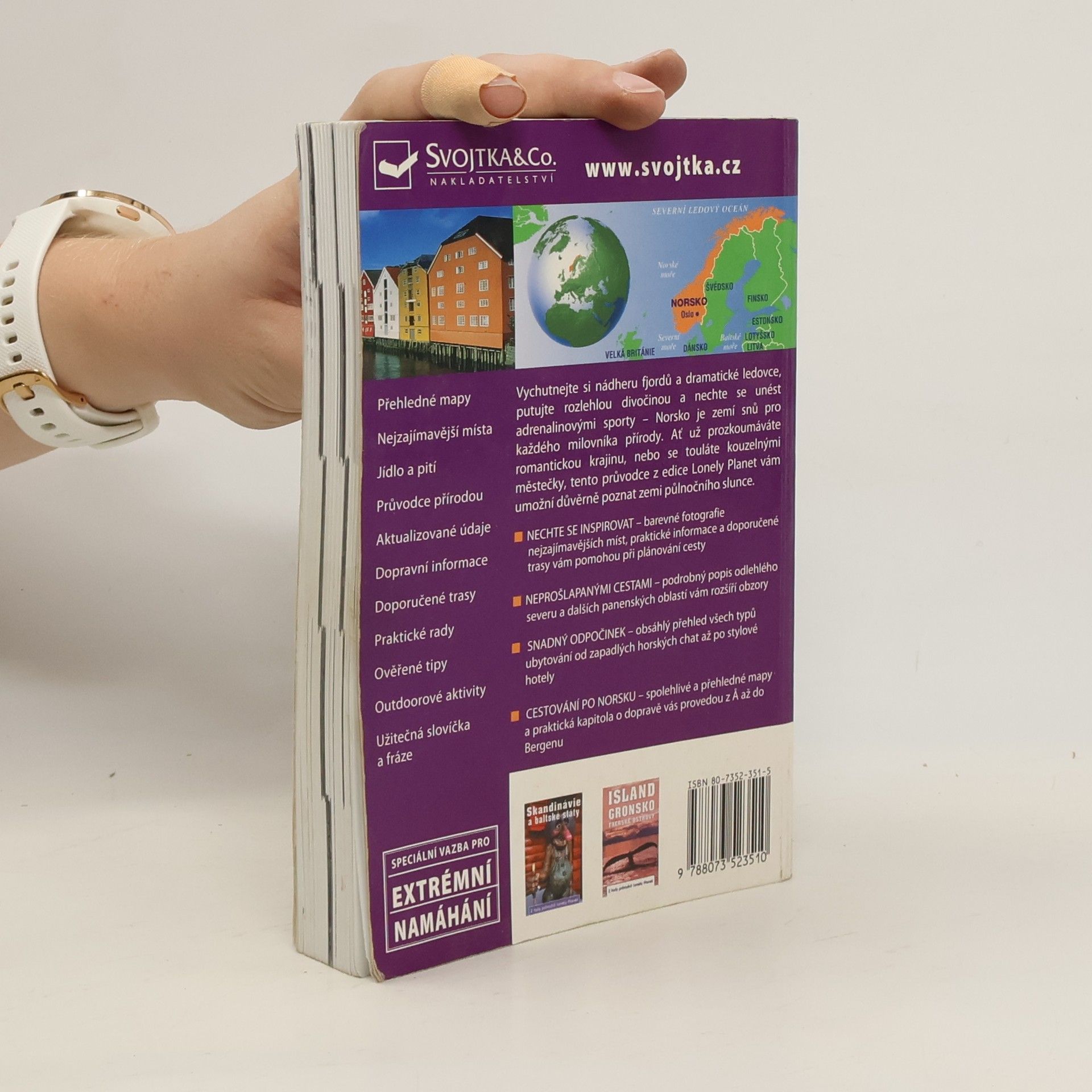 Cestovní příručka obsahuje praktické rady a údaje pro turisty, popisy míst, krajiny a pamětihodností i pojednání o historii a kultuře Norska.