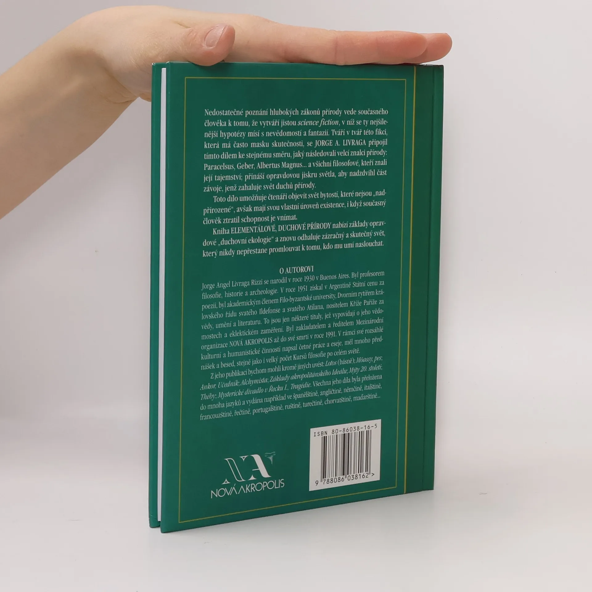 Nedostatečné poznání hlubokých zákonů přírody vede současného člověka k tomu, že vytváří jistou science fiction, v níž se ty nejšílenější hypotézy mísí s nevědomostí a fantazií. Tváří v tvář této fikci, která má často masku skutečnosti, se Jorge A. Livraga připojil tímto dílem ke stejnému směru, jaký následovali velcí znalci přírody: Paracelsus, Geber, Albertus Magnus... a všichni filosofové, které znali její tajemství; přináší opravdovou jiskru světla, aby nadzdvihl část závoje, jenž zahaluje svět duchů přírody. Toto dílo umožňuje čtenáři objevit svět bytostí, které nejsou "nadpřirozené", avšak mají svou vlastní úroveň existence, i když současný člověk ztratil schopnost je vnímat. Kniha ELEMENTÁLOVÉ, DUCHOVÉ PŘÍRODY nabízí základy opravdové "duchovni ekologie" a znovu odhaluje zázračný a skutečný svět, který nikdy nepřestane promlouvat k tomu, kdo mu umí naslouchat.... celý text