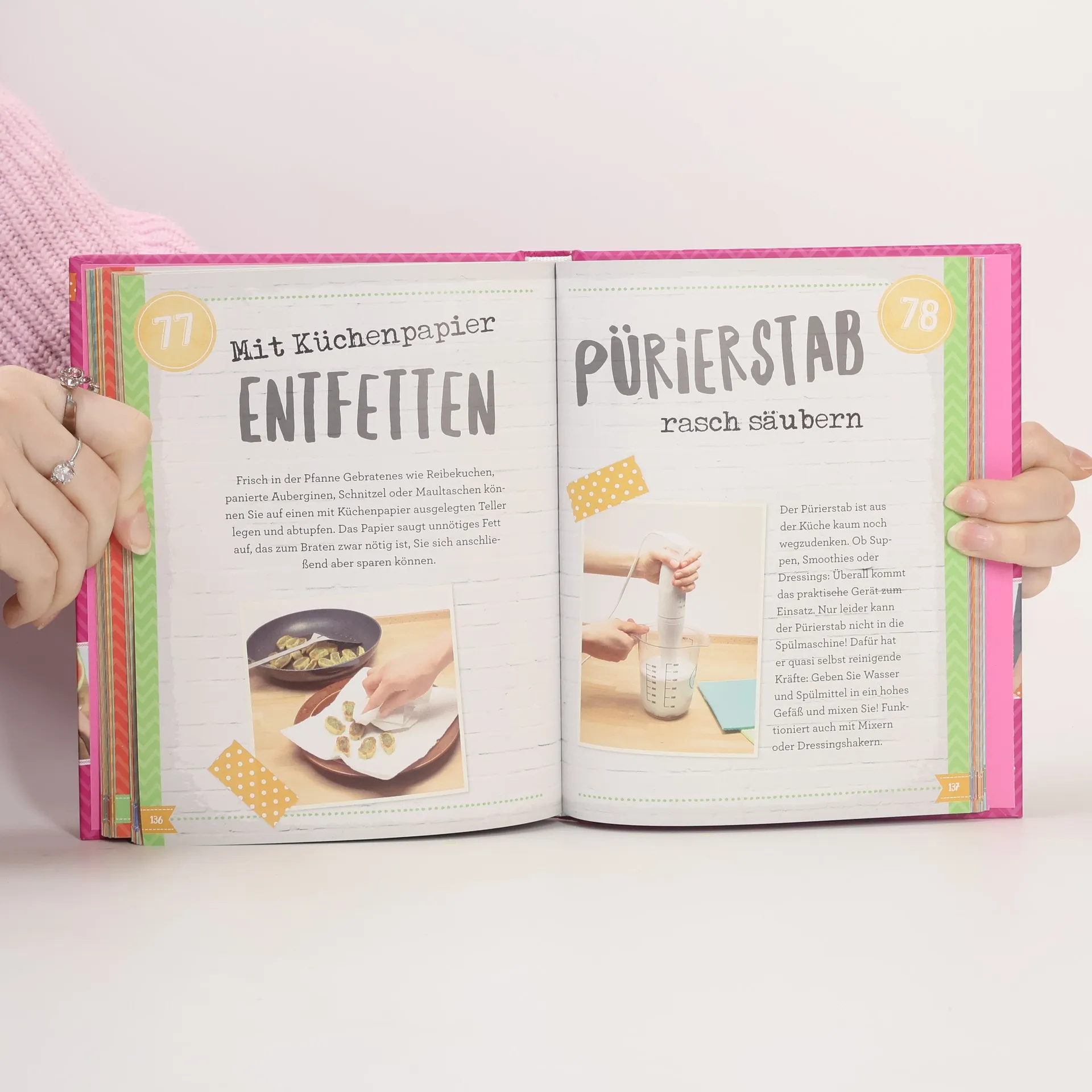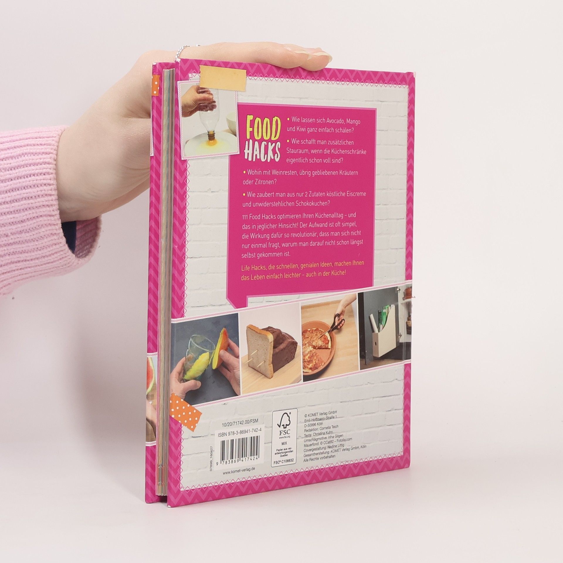 Mach's dir einfach - Das brauchen alle, die eine Küche haben! - 111 Food Hacks: nützliche, praktische und überraschend einfache Küchentricks - Mit genialen Ideen ganz leicht Stauraum schaffen, Lebensmittel frisch halten, Obst und Gemüse schälen, Küchengeräte reinigen, Angebranntes retten und vieles mehr -Alle Food Hacks mit Foto und genauer Beschreibung Wie lassen sich Avocado, Mango und Kiwi ganz einfach schälen? Wie schafft man zusätzlichen Stauraum, wenn die Küchenschränke eigentlich schon voll sind? Wohin mit Weinresten, übrig gebliebenen Kräutern oder Zitronen? Wie bereitet man aus nur 2-3 Zutaten köstliche Eiscreme und unwiderstehlichen Schokokuchen? 111 geniale Food Hacks optimieren Ihren Küchenalltag - und das in jeglicher Hinsicht! Ob kochen, bevorraten, Platz schaffen oder reinigen: Der Aufwand ist oft so gering, der Trick so simpel, dass man sich nicht nur einmal fragt, warum man darauf nicht schon längst selbst gekommen ist.