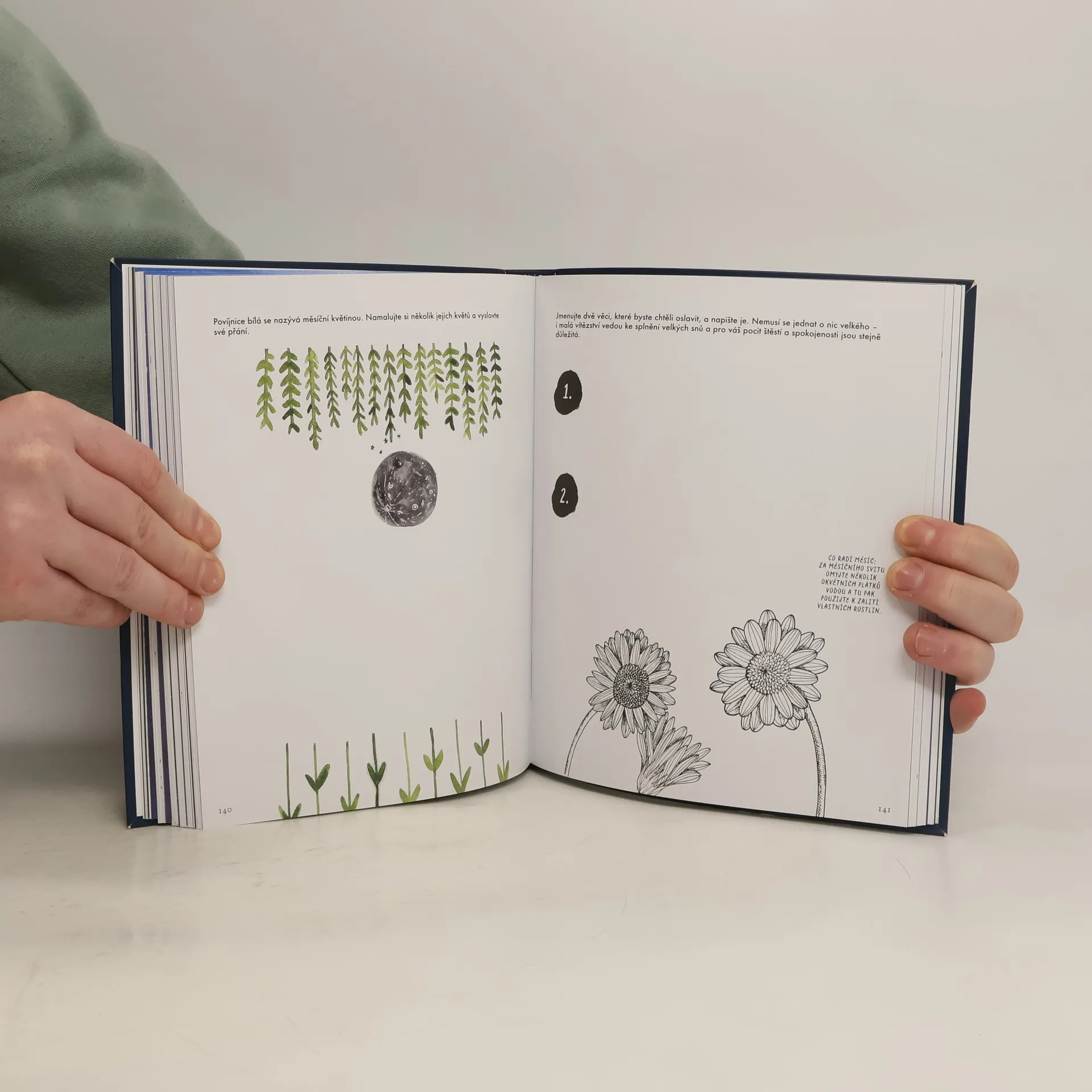Tato interaktivní kniha vás naučí využívat sílu Měsíce k naplnění vašich záměrů. Porozumění tomuto vesmírnému tělesu vám pomůže plánovat a realizovat své sny v souladu s lunárním cyklem. Kniha je rozdělena do osmi kapitol, které reprezentují jednotlivé měsíční fáze, přičemž každá z těchto částí obsahuje celou řadu nejrůznějších aktivit spojených s hlavním tématem typickým pro dané období: od vytyčení cílů, přes kreslení a malování, až k takovým činnostem, jako je horká koupel, vytvoření nádoby přání nebo prosté vychutnání šálku dobrého čaje. Začnete-li žít v souladu s Měsícem, záhy zpozorujete, jak se během lunárního cyklu mění vaše nálada i množství energie. Překrásné ilustrace v této knize vám pomohou podlehnout kouzlu Měsíce, zpomalit a intenzivně prožívat pocity štěstí.