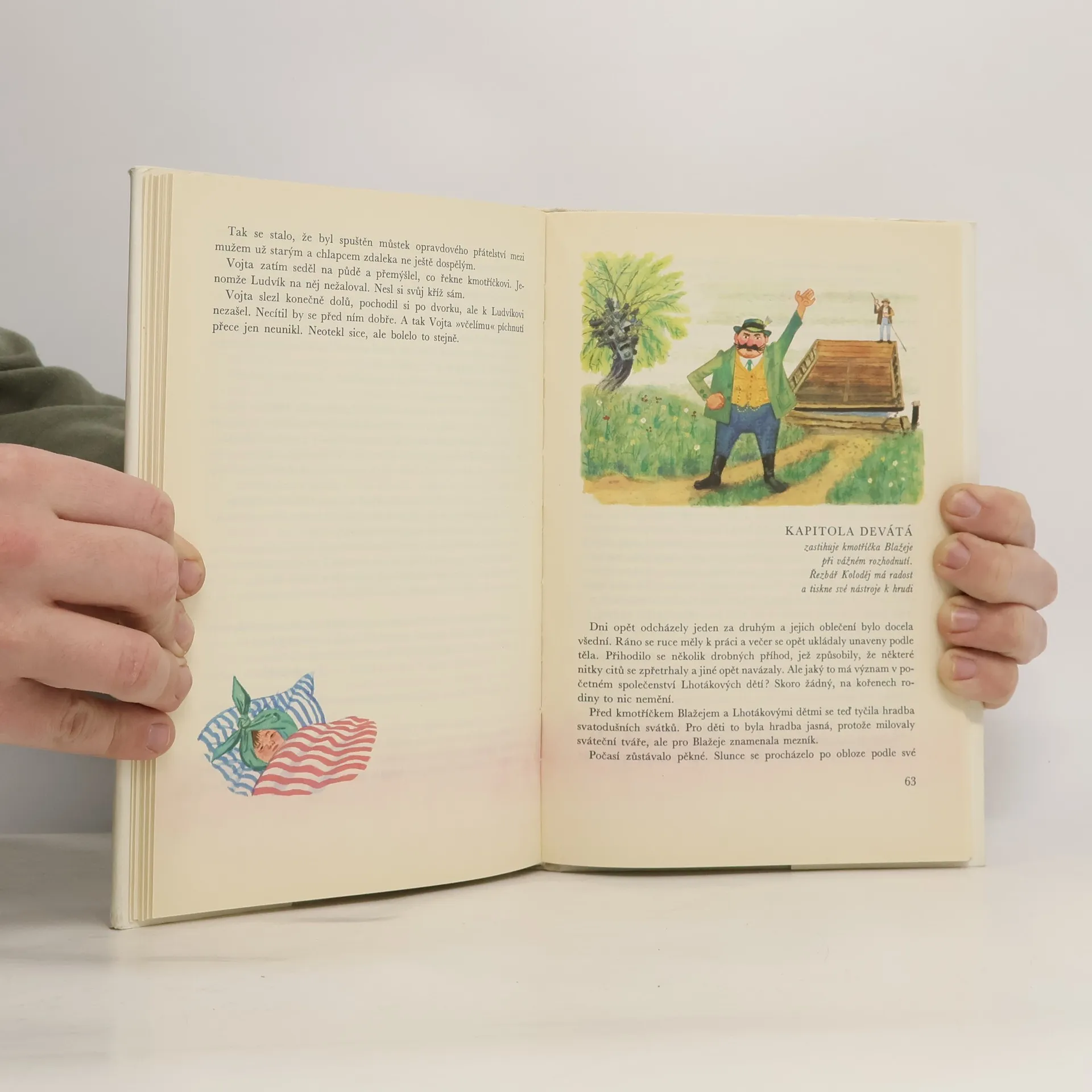 Jedna z prvních knih autorových (vyšla poprvé r. 1946) zavádí ve zpola legendárním a zpola reálném příběhu do malého městečka v 19. století. Svatý Blažej, kmotr dětí chudé vdovy, se ustrne nad prosbami matky a po její smrtisestoupí z chrámového podstavce, ujme se po vdově chaloupky, chopí se zednického řemesla a stará se o sedm osiřelých dětí. Příhody úsměvné i vážné jsou zachyceny v poutavém vyprávění