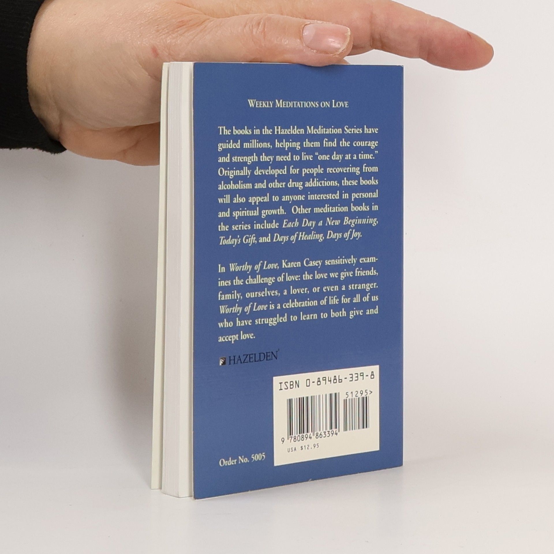 In this beautifully written meditation book, best-selling author Karen Casey sensitively examines the challenges of the love we give friends, family, a lover, even ourselves.Worthy of Love offers 52 (weekly) inspiring quotes and short readings for those who struggle to love and be loved."The irony is that the harder we look for love, the more blurred our vision. Only when we become quiet and trust that love is our birthright do we discover its friendship has enfolded us." --Karen Casey, Worthy of Love