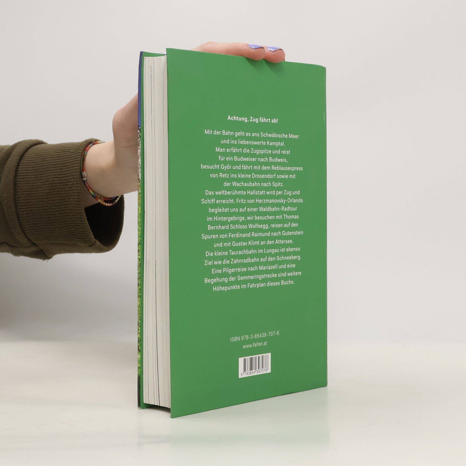 Achtung, Zug fährt ab! Mit der Bahn geht es ans Schwäbische Meer und ins liebenswerte Kamptal, auf die Spitze der Zugspitze, für ein Budweiser nach Budweis, mit dem Reblausexpress von Retz ins kleine Drosendorf sowie mit der Wachaubahn nach Spitz. Das weltberühmte Hallstatt wird per Zug und Schiff erreicht. Fritz von Herzmanovsky-Orlando begleitet uns auf einer Waldbahn-Radtour im Hintergebirge, wir besuchen mit Thomas Bernhard Schloss Wolfsegg, reisen auf den Spuren von Ferdinand Raimund nach Gutenstein und mit Gustav Klimt an den Attersee. Die kleine Taurachbahn im Lungau ist ebenso Ziel wie die Zahnradbahn auf den Schneeberg. Eine Pilgerreise nach Mariazell und eine Begehung der Semmeringstrecke sind weitere Höhepunkte im Fahrplan dieses Buchs. Für all, die zur Abwechslung einen Ausflug, eine kurze Reise, ein Weekend, eine Vergnügungsfahrt mit der Bahn absolvieren wollen. Dieses Buch beschreibt schöne Bahnstrecken und empfiehlt diverse Anschlussprogramme: Stadt- und Landbesichtigungen, Spaziergänge, Wanderungen, Radtouren quer durch Österreich, vom Neusiedler- bis zum Bodensee, von Südkärnten bis zum nördlichen Waldviertel, vom hohen Schneeberg bis zum fröhlichen Zillertal. Natürlich, man kommt mit Zügen nicht überall hin, aber es überrascht immer wieder, wie viele funktionierende Verbindungen es gibt, wohin überall man bequem auto-, stau- und abgasfrei reisen kann.