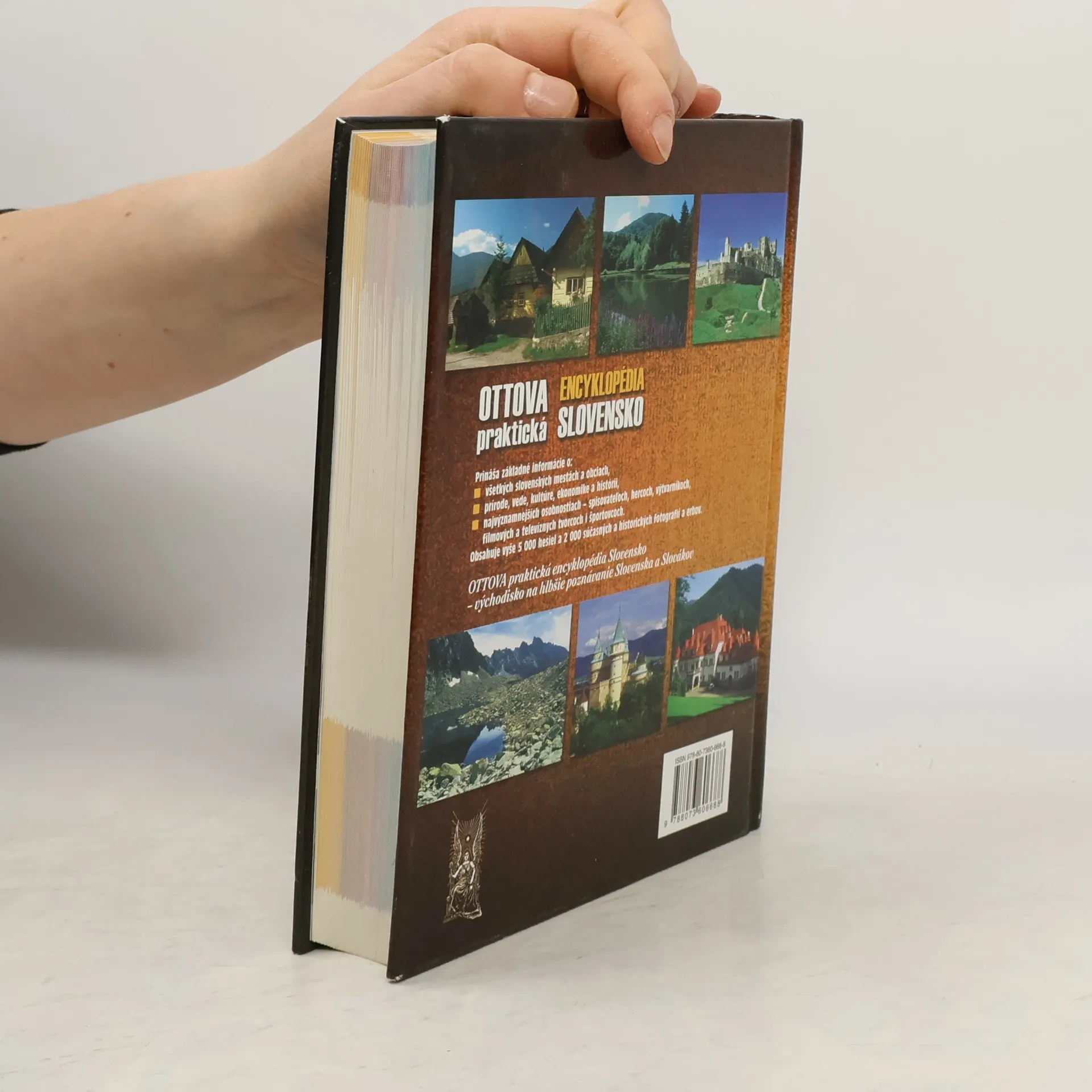 OTTOVA praktická encyklopédia SLOVENSKO vychádza z databázy hesiel vytvorených odborníkmi z vysokých škôl a kultúrnych pracovísk Slovenskej republiky. Obsahuje vyše 5 000 hesiel a približne 2 000 fotografií, vrátane portrétov a erbov. Encyklopédia ponúka základné údaje o všetkých slovenských mestách a obciach, ako sú poloha, počet obyvateľov a vzdialenosť od Bratislavy, ako aj významné archeologické nálezy a historické udalosti. Zohľadňuje aj osobnosti, ktoré sa v týchto lokalitách narodili alebo pôsobili. Historické heslá objektívne mapujú dôležité míľniky a predstavujú aj kontroverzné osobnosti a udalosti. V oblasti kultúry sú zahrnuté najvýznamnejšie osobnosti ako spisovatelia, herci, výtvarníci, hudobníci, filmoví a televízni tvorcovia, tanečníci a športovci. Encyklopédia tiež obsahuje informácie o najdôležitejších slovenských inštitúciách a stručne charakterizuje demografický a územný vývoj, ekonomiku, priemysel, poľnohospodárstvo a školstvo. Veríme, že táto encyklopédia bude cenným pomocníkom pri hľadaní informácií a rýchlej orientácii v základných poznatkoch o Slovensku.