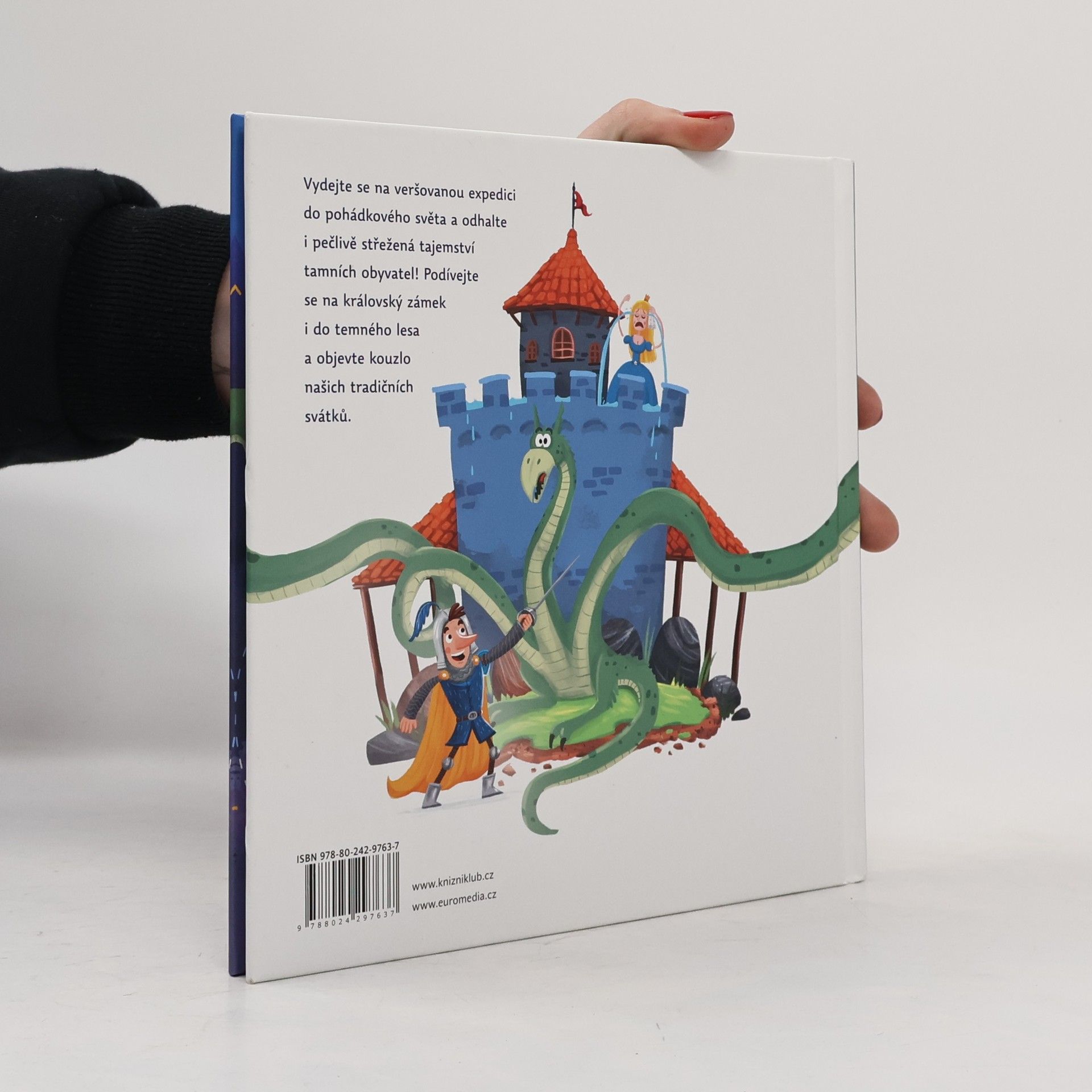 Vydejte se námi na expedici do pohádkového světa a odhalte i pečlivě skrytá tajemství tamních obyvatel. Spolu s pohádkovými hrdiny zavítejte na královský zámek, do temného lesa i říše zvířat a odhalte kouzlo našich tradičních svátků. Říkanky v této knize jsou nejen zábavné, zároveňobsahují důležité informace o naší historii, kultuře a tradicích.