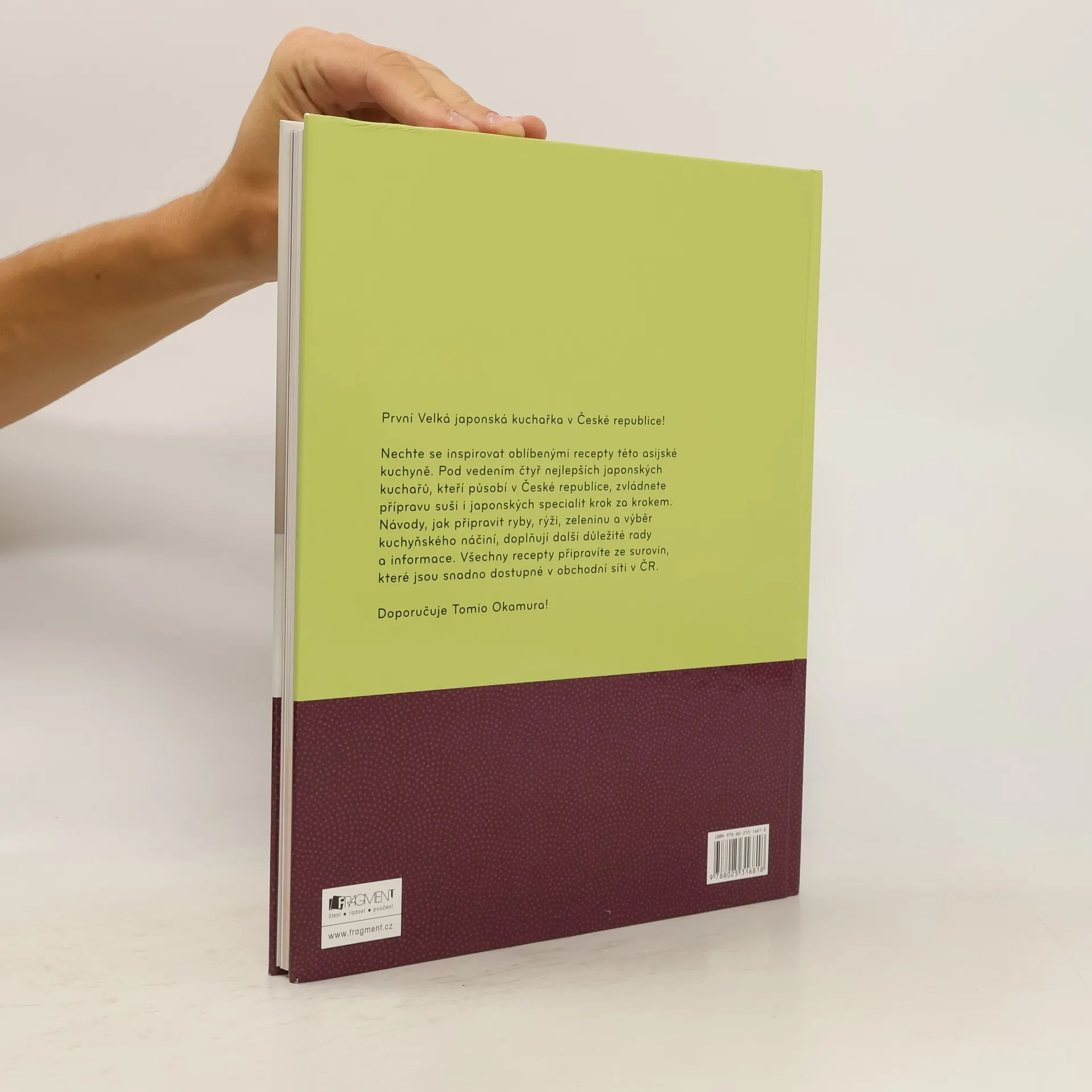Velká japonská kuchařka přináší originální recepty od předních japonských kuchařů. Seznámí nás s nejoblíbenějšími recepty této asijské kuchyně a naučí nás jejich přípravu krok za krokem. Kromě oblíbených sushi receptů přináší i řadu dalších specialit. Dozvíme se také, jak připravovat ryby, rýži, zeleninu - jaké používat kuchyňské náčiní a mnoho dalších důležitých rad a informací. K přípravě jídel jsou použity ingredience dostupné v naší obchodní síti, případně ve speciálních prodejnách s japonskými potravinami. Kuchařkou provází 4 nejvýznamnější japonští kuchaři působící v České republice. Knihu doporučuje Tomio Okamura.