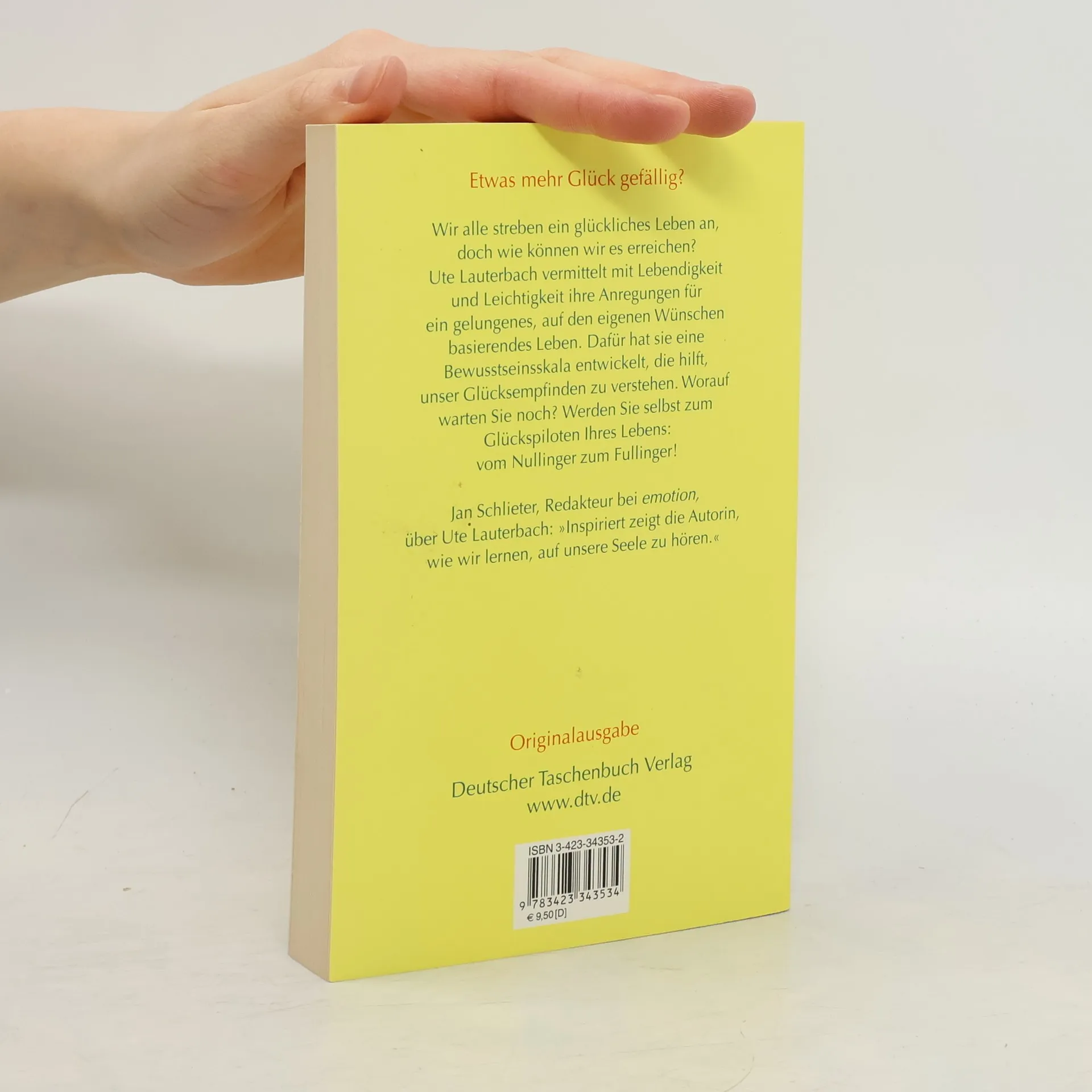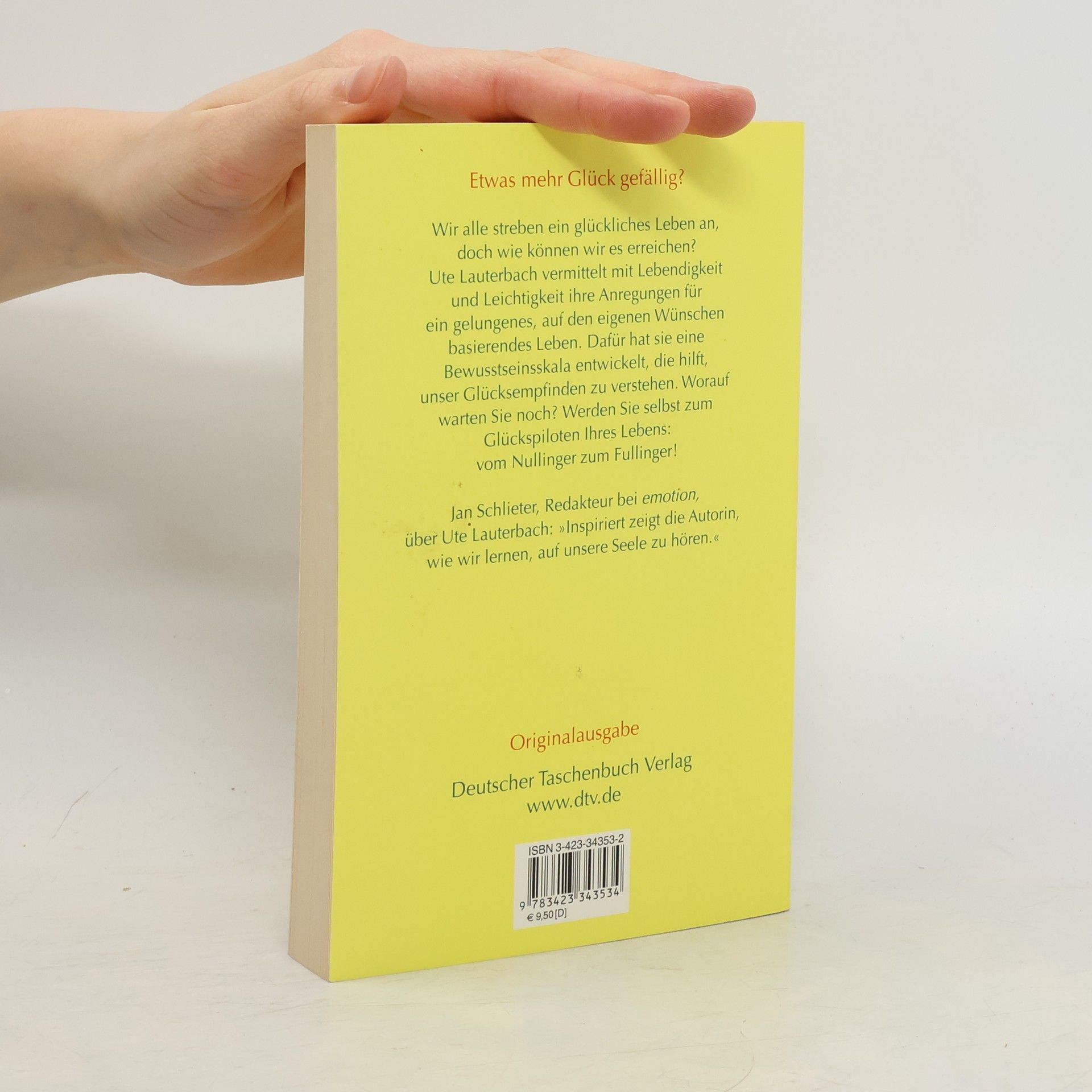 Etwas mehr Glück gefällig? Jeder strebt ein glückliches Leben an, doch wie können wir es erreichen? Mit Lebendigkeit und Leichtigkeit vermittelt uns Ute Lauterbach ihre Anregungen für ein gelungenes, auf den eigenen Wünschen basierendes Leben. Die Kapitel widmet sie verschiedenen Themenbereichen, wie beispielsweise Entwicklung, Ideale, Liebe oder Wahrheit. Bei jedem dieser Aspekte befinden sich unsere Gefühle zwischen den Extrempunkten Unglück und Glück. Die Nuancen können wir uns auf der von der Autorin entwickelten Bewusstseinsskala deutlich machen. Dadurch aktivieren wir den Glückspiloten in uns: Wenn wir erkennen, wo auf der Skala wir uns in den verschiedenen Situationen unseres Alltags befinden, verstehen wir, was uns unglücklich macht, und können dagegen angehen. Die Kapitel schließen jeweils mit Fragen, die einen in sich hineinhorchen und damit einen Ausgangspunkt für die Lösung finden lassen. Kleine, heitere Illustrationen runden ihre inspirierenden Vorschläge für ein glücklicheres Leben ab.