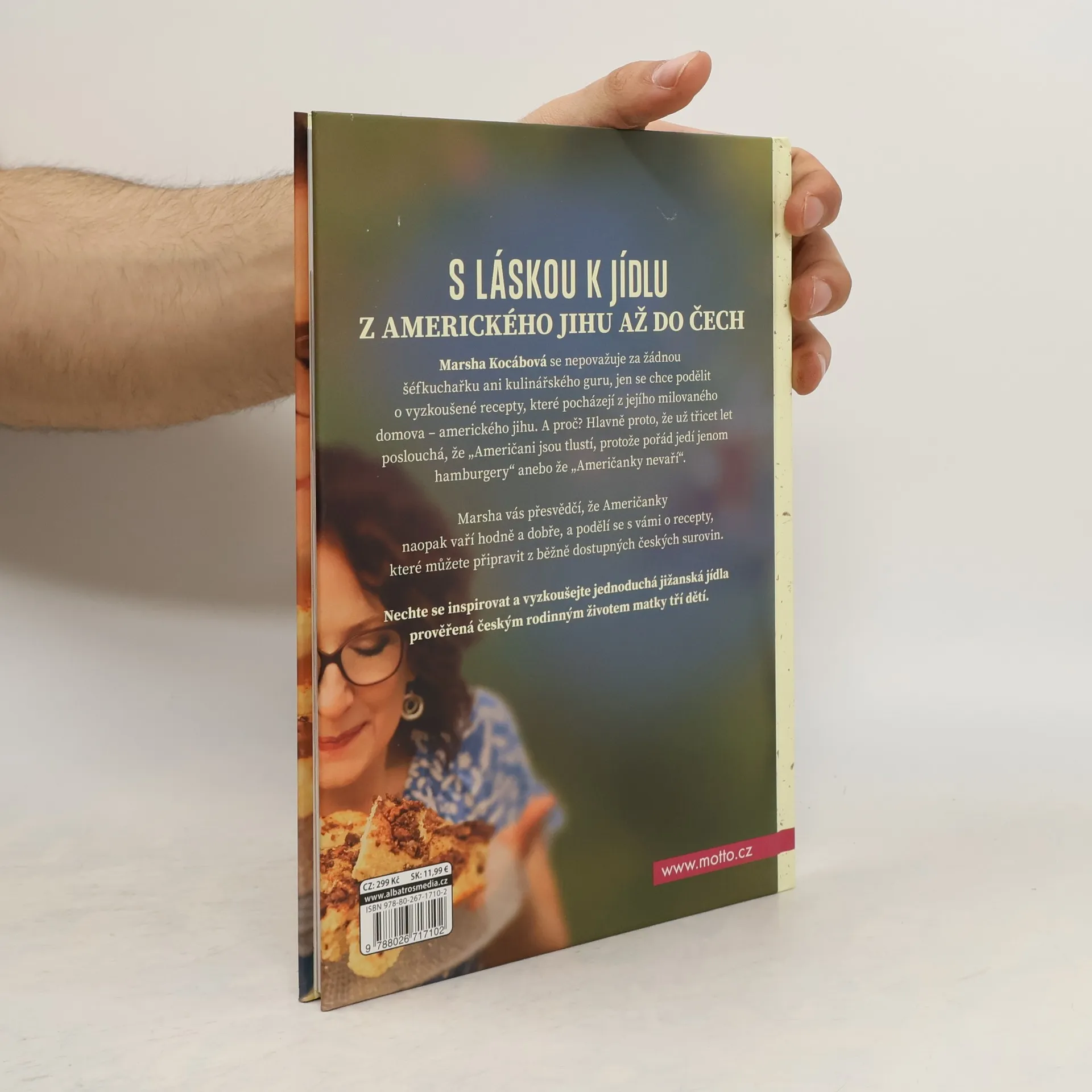 S láskou k jídlu z amerického jihu až do Čech, Marsha Kocábová se nepovažuje za žádnou šéfkuchařku ani kulinářského guru, jen se chce podělit o vyzkoušené recepty, které pocházejí z jejího milovaného domova – amerického jihu. A proč? Hlavně proto, že už třicet let poslouchá, že „Američani jsou tlustí, protože pořád jedí jenom hamburgery“ anebo že „Američanky nevaří“. Marsha vás přesvědčí, že Američanky naopak vaří hodně a dobře, a podělí se s vámi o recepty, které můžete připravit z běžně dostupných českých surovin. Nechte se inspirovat a vyzkoušejte jednoduchá jižanská jídla prověřená českým rodinným životem matky tří dětí.