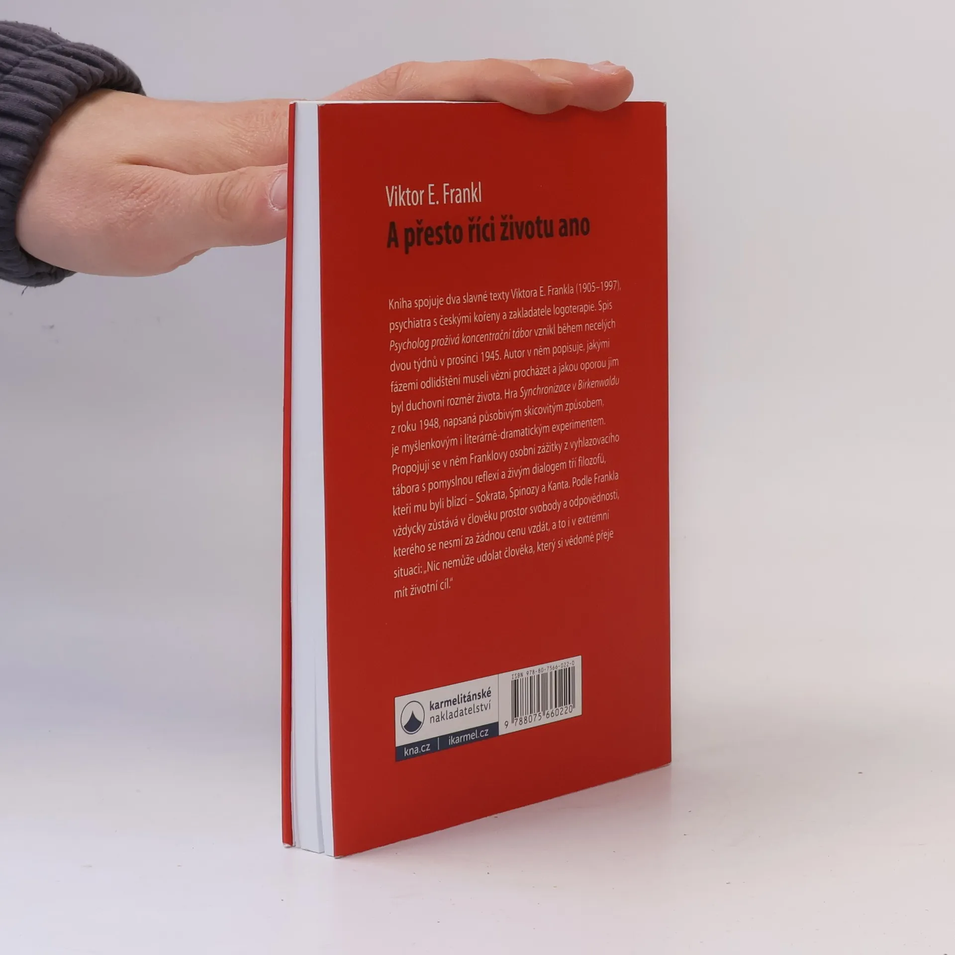 Kniha spojuje dva slavné texty Viktora E. Frankla (1905–1997), psychiatra s českými kořeny a zakladatele logoterapie. Spis Psycholog prožívá koncentrační tábor vznikl během necelých dvou týdnů v prosinci 1945. Autor v něm popisuje, jakými fázemi odlidštění museli vězni procházet a jakou oporou jim byl duchovní rozměr života. Hra Synchronizace v Březince z roku 1948, napsaná působivým skicovitým způsobem, je myšlenkovým i literárně-dramatickým experimentem. Propojují se v něm Franklovy osobní zážitky z vyhlazovacího tábora s pomyslnou reflexí a živým dialogem tří filozofů, kteří mu byli blízcí – Sokrata, Spinozy a Kanta. Podle Frankla vždycky zůstává v člověku prostor svobody a odpovědnosti, kterého se nesmí za žádnou cenu vzdát, a to i v extrémní situaci: „Nic nemůže udolat člověka, který si vědomě přeje mít životní cíl.“