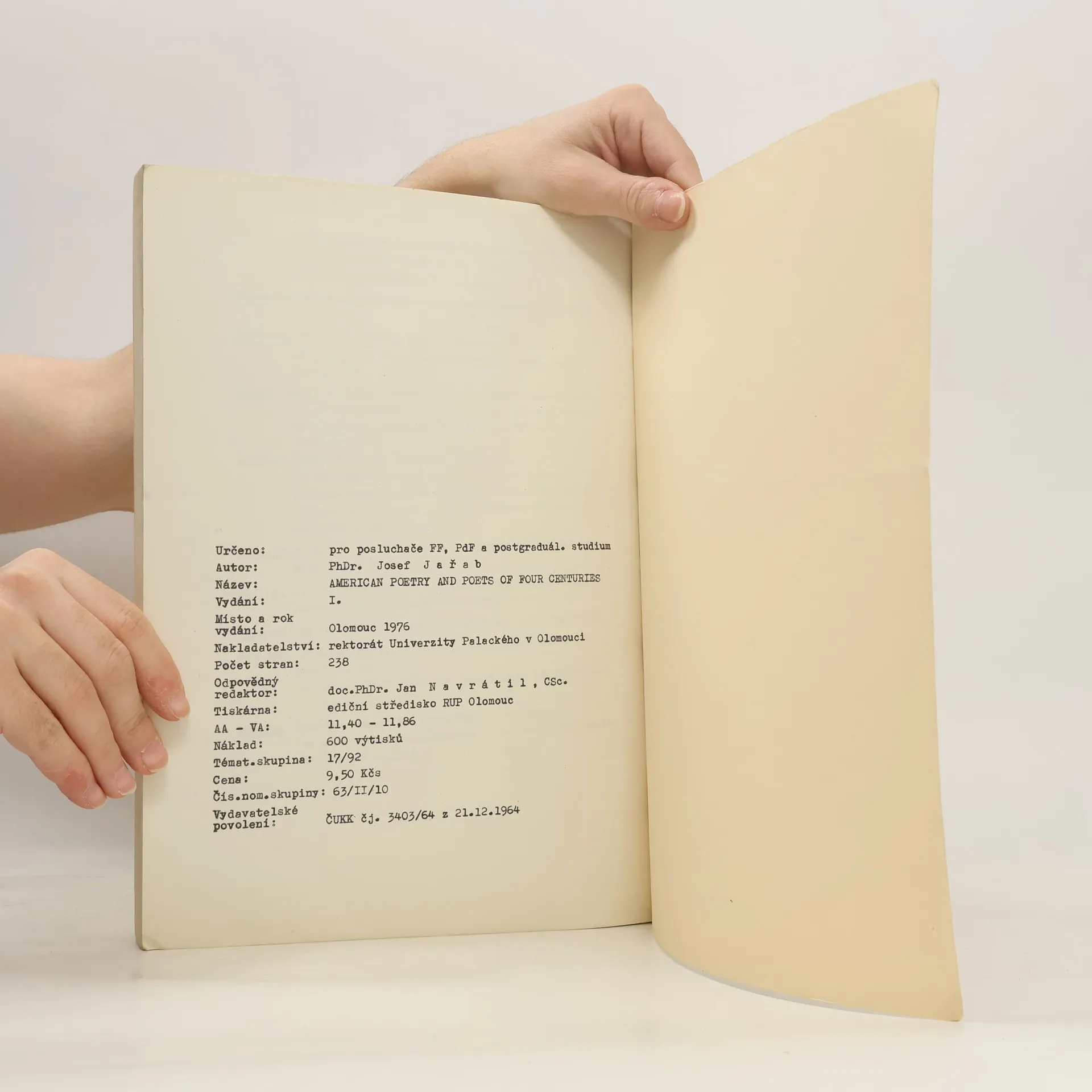 American Poetry and Poets of Four Centuries, Josef Jařab