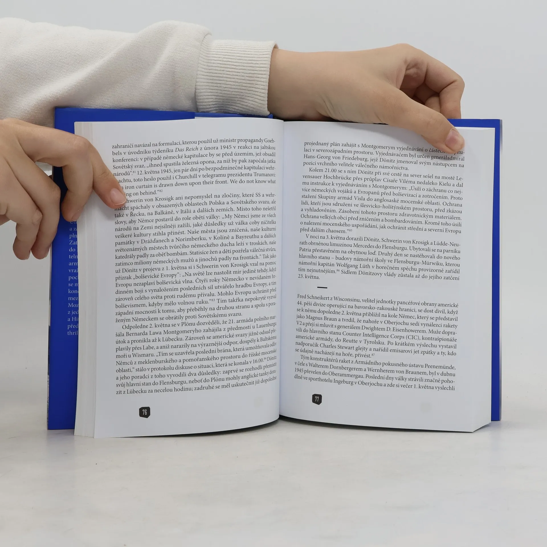 Minulost, která ještě neskončila, a budoucnost, jež zatím nezačala. Začíná poslední týden třetí říše. Hitler je po smrti, ale válka ještě neskončila. Všechno jako by se zastavilo, a přece je všechno v překotném pohybu. Volker Ullrich líčí tento „čas bezčasí“ den po dni a zavádí čtenáře do hroutícího se světa plného dramat a naděje, násilí a strachu. Poslední pochody smrti, divoké odsuny, hroutící se moc nacistických pohlavárů, osvobozené koncentrační tábory – to vše patří k oné mezeře mezi minulostí a budoucností. Mozaika „Osmi květnových dnů“, kterou z jednotlivých kamínků sestavil novinář a Hitlerův životopisec Volker Ullrich, představuje napínavější četbu než leckterý thriller.
