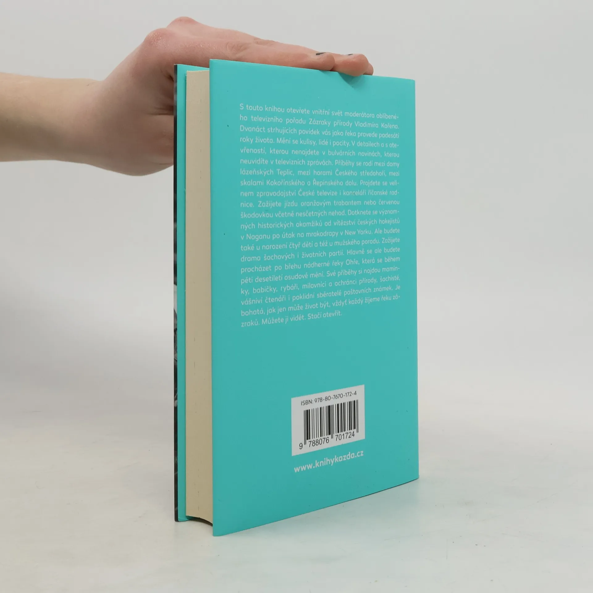 Povídky psané zralou rukou čerstvého padesátníka. S touto knihou otevřete vnitřní svět moderátora oblíbeného televizního pořadu Zázraky přírody Vladimíra Kořena. Dvanáct strhujících povídek Vás jako řeka provede padesáti lety života. Mění se kulisy, lidé i pocity. V detailech a s otevřeností, kterou nenajdete v bulvárních novinách, kterou nevidíte v televizních zprávách. Příběhy se rodí mezi domy lázeňských Teplic, mezi horami Českého středohoří, mezi skalami kokořínského a řepínského dolu. Projdete se velínem zpravodajství České televize i kanceláří říčanské radnice. Zažijete jízdu oranžovým trabantem nebo červenou škodovkou včetně nesčetných nehod. Dotknete se významných okamžiků naší historie od vítězství českých hokejistů v Naganu po útok na mrakodrapy v New Yorku. Ale budete také u narození čtyř dětí a též u mužského porodu. Zažijete drama šachových i životních partií. Hlavně se ale budete procházet po břehu nádherné řeky Ohře, která se během padesáti let osudově mění. Své příběhy si najdou maminky, babičky, rybáři, milovníci a ochránci přírody, šachisté, vášniví čtenáři i poklidní sběratelé poštovních známek. Je bohatá, jak jen může život být. Vždyť každý žijeme Řeku zázraků. Můžete ji vidět. Stačí otevřít.