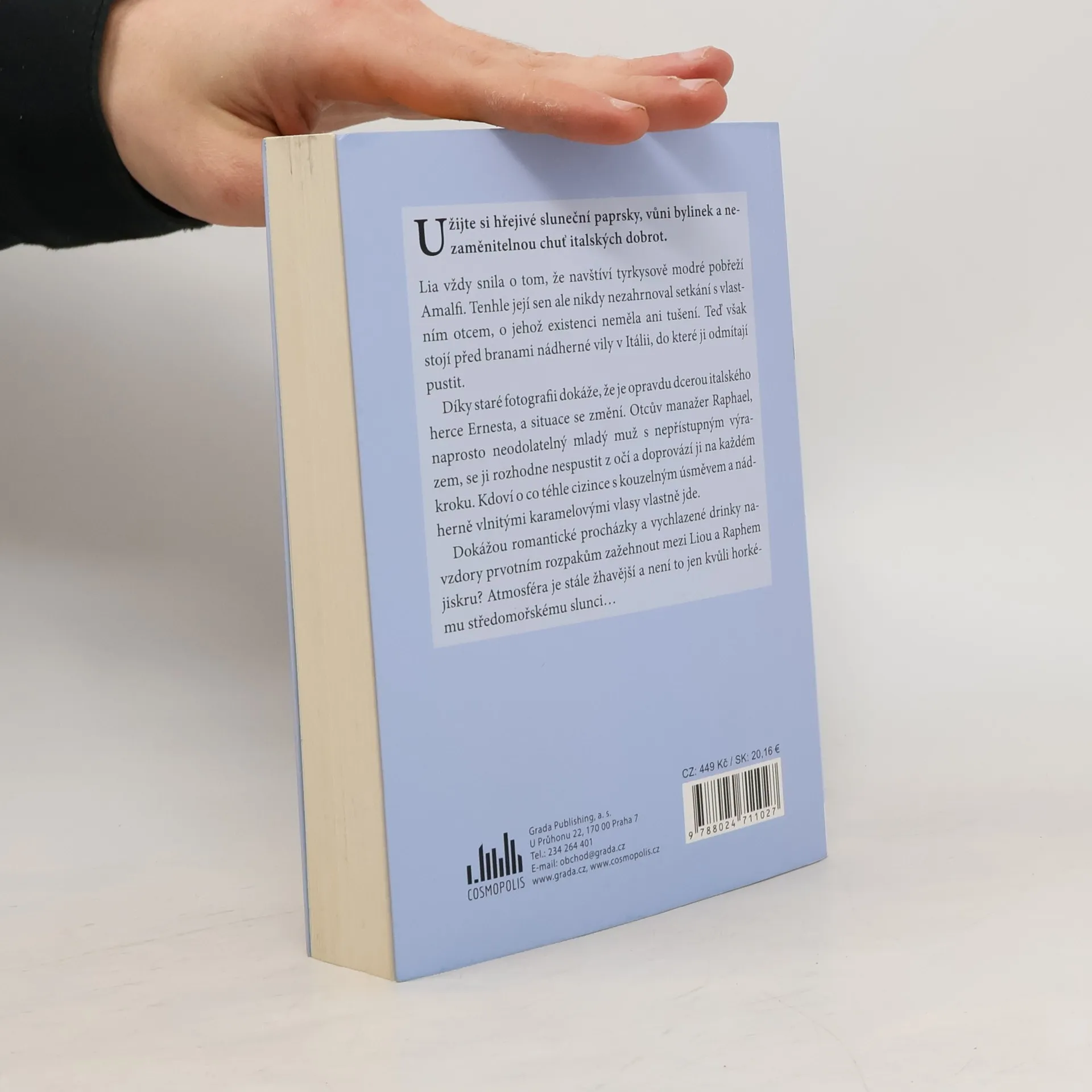 Lia vždy snila o tom, že navštíví tyrkysově modré pobřeží Amalfi. Tenhle její sen ale nikdy nezahrnoval setkání s vlastním otcem, o jehož existenci neměla ani tušení. Teď však stojí před branami nádherné vily v Itálii, do které ji odmítají pustit. Díky staré fotografii dokáže,že je opravdu dcerou italského herce Ernesta, a situace se změní. Otcův manažer Raphael, naprosto neodolatelný mladý muž s nepřístupným výrazem, se ji rozhodne nespustit z očí a doprovází ji na každém kroku. Kdoví o co téhle cizince s kouzelným úsměvem a nádherně vlnitými karamelovými vlasy vlastně jde. Dokážou romantické procházky a vychlazené drinky i přes počáteční rozpaky zažehnout mezi Liou a Raphem jiskru? Atmosféra je stále žhavější a není to jen kvůli horkému středomořskému slunci.