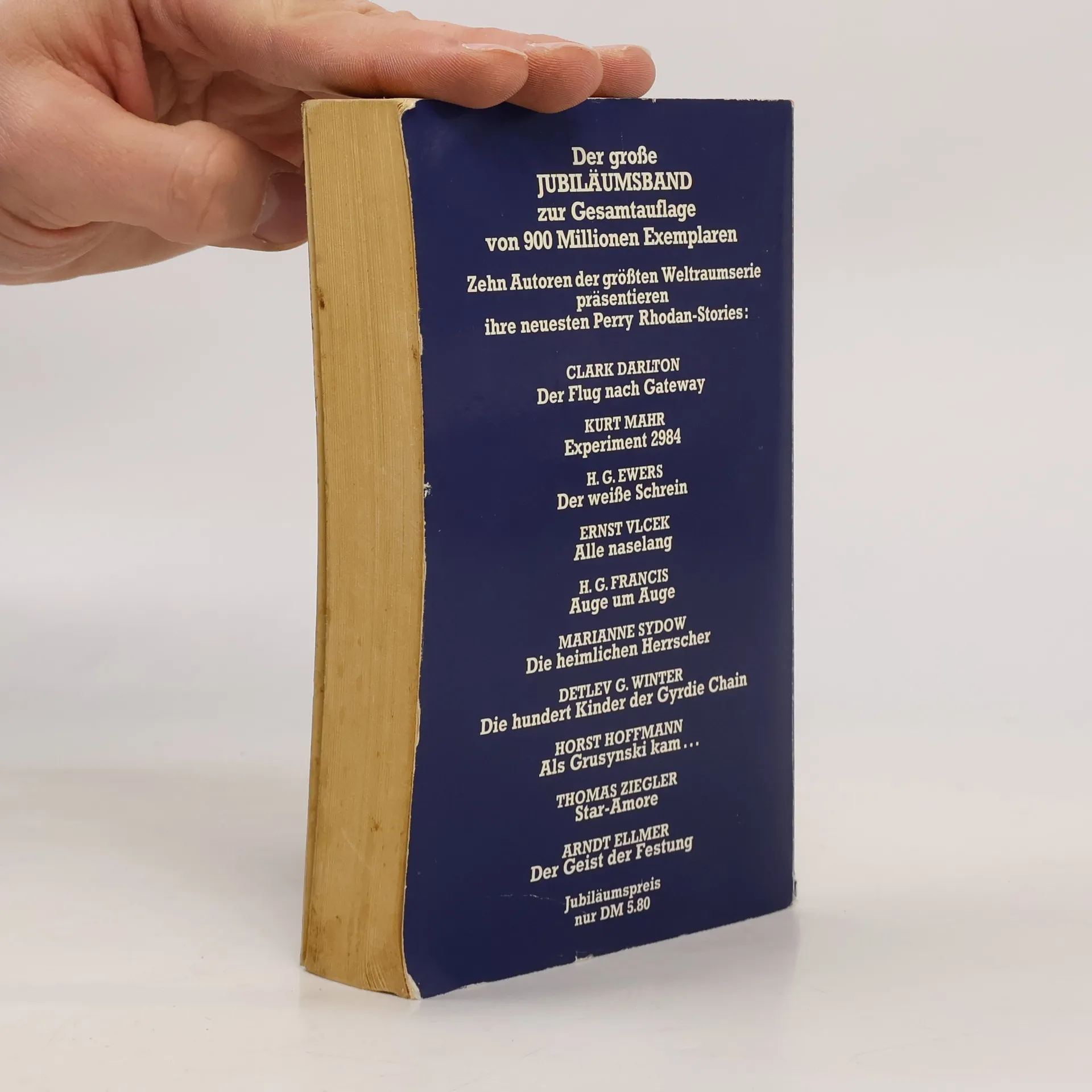 Der große Jubiläumsband zur Gesamtauflage von 900 Millionen ExemplareZehn Autoren der größten Weltraumserie präsentieren ihre neuesten Perry Rhodan-Stories:Enthält die Texte:Vorbemerkungen G.M. SchelwokatDer Flug nach Gateway Clark Darlton Experiment 2984 Kurt MahrDer weiße Schrein H. G. Ewers Alle naselang Ernst VlcekAuge in Auge H. G. FrancisDie heimlichen Herrscher Marianne SydowDie hundert Kinder der Gyrdie Chain Detlev G. WinterAls Grusynski kam Horst Hoffmann Star-Amore Thomas ZieglerDer Geist der Festung Arndt Ellmer