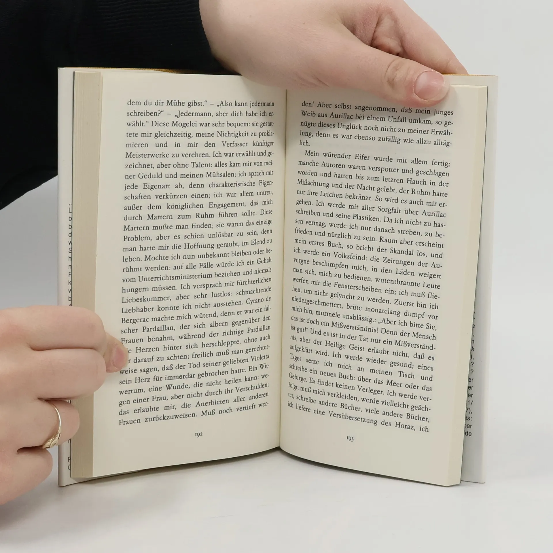 Zuerst würde ich mir einen unzerstörbaren Leib geben, und dann würde ich mich den Verbrauchern überliefern. Ich würde nicht schreiben aus Freude am Schreiben, sondern um diesen unsterblichen Teil in Wörter zu verwandeln. Schaute ich von der Höhe meines Grabmales herab, so erschien mir meine Geburt als ein notwendiges Übel, als eine ganz vorläufige Fleischwerdung, dazu bestimmt, meine Verklärung vorzubereiten: um wiedergeboren zu werden, muß man schreiben, zum Schreiben braucht man ein Gehirn, Augen, Arme; wardie Arbeit beendet, fielen diese Organe in sich zusammen: ungefähr um das Jahr 1955 würde ein Kokon aufplatzen, fünfundzwanzig Schmetterlinge in Buchformat würden davonflattern, mit ihren Seiten schlagen und sich schließlich auf einem Regal der Nationalbibliothek niederlassen. Die Schmetterlinge wären nichts anderes als ICH. ICH: fünfundzwanzig Bände, achtzehntausend Textseiten, dreihundert Abbildungen, darunter das Bildnis des Verfassers. Meine Knochen sind aus Leder und Pappe, mein Papierfleisch riecht nach Kleister und Druckerschwärze, behaglich türme ich mich auf mit sechzig Kilo Papier. Ich erlebe eine Wiedergeburt." Die Autobiographie Jean-Paul Sartres Die Wörter" (1964) ist eine ironische Abrechnung mit der Neurose von der Allmacht der Literatur.