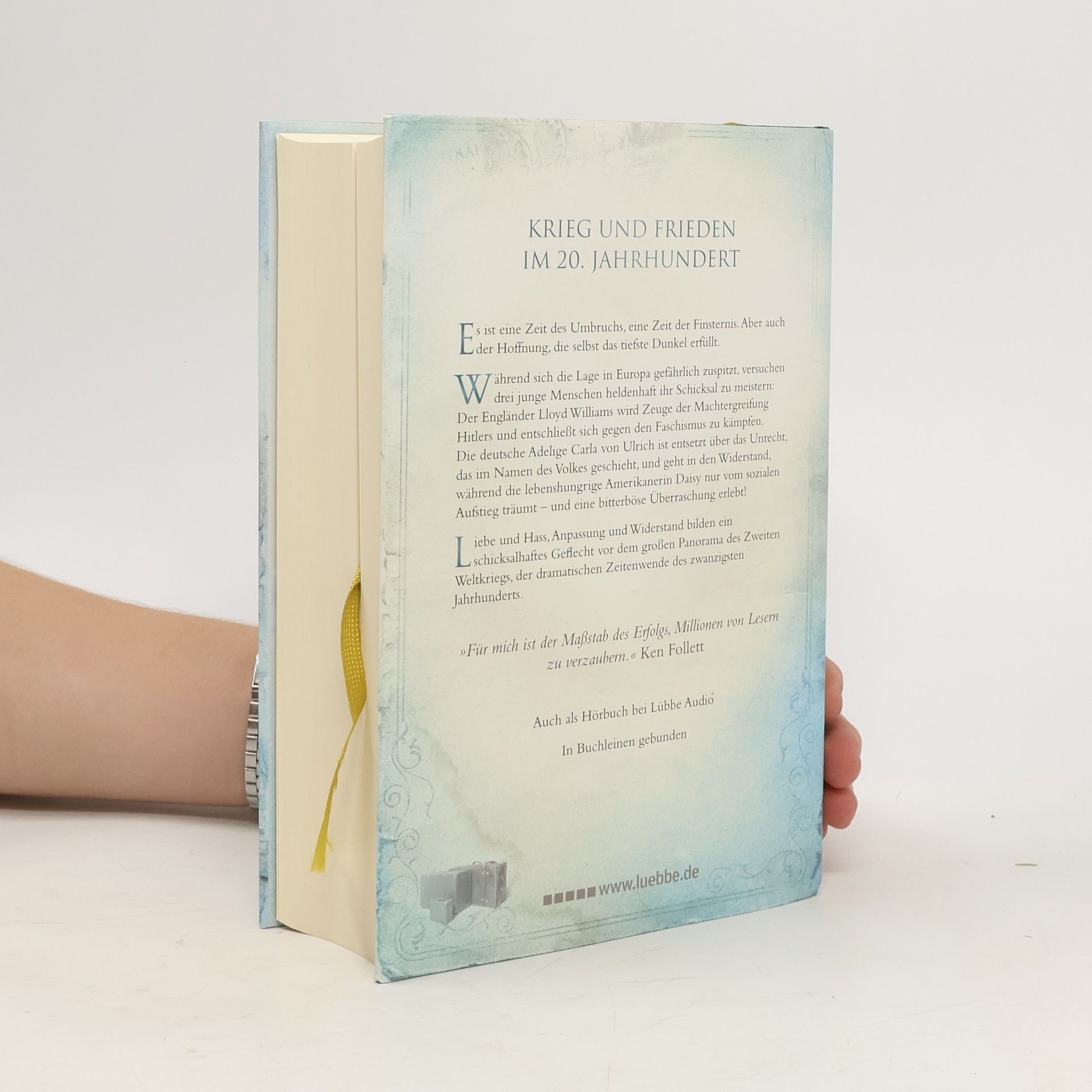 1933. Nach dem Ersten Weltkrieg ist eine neue Generation herangewachsen, während sich die Lage in Europa erneut zuspitzt. In dieser dramatischen Zeit kämpfen drei junge Menschen um ihr Schicksal. Der Engländer Lloyd Williams wird Zeuge der Machtergreifung Hitlers und meldet sich freiwillig als Soldat im Spanischen Bürgerkrieg, um gegen den Faschismus zu kämpfen. Die deutsche Adelige Carla von Ulrich ist entsetzt über das Unrecht, das im Namen des Volkes geschieht, und geht in den Widerstand, was ihre Familie in höchste Gefahr bringt. Die amerikanische Daisy hingegen träumt vom sozialen Aufstieg und heiratet einen englischen Lord, der jedoch auf Seiten der Faschisten steht. Die Geschichte spannt sich von Berlin bis Moskau, von London bis Washington, D.C., und erzählt die miteinander verbundenen Schicksale von Menschen in Deutschland, Russland, England und den USA, während der Zweite Weltkrieg droht. Es ist eine Zeit des Umbruchs und der Finsternis, aber auch der Hoffnung, die selbst das tiefste Dunkel erhellt. Als in sich abgeschlossener historischer Roman ist dies der dramatische Höhepunkt von Ken Folletts Jahrhundert-Trilogie, die mit dem ersten Teil begann und mit dem letzten Teil ihren Abschluss findet. Platz 1 der SPIEGEL-Bestsellerliste.