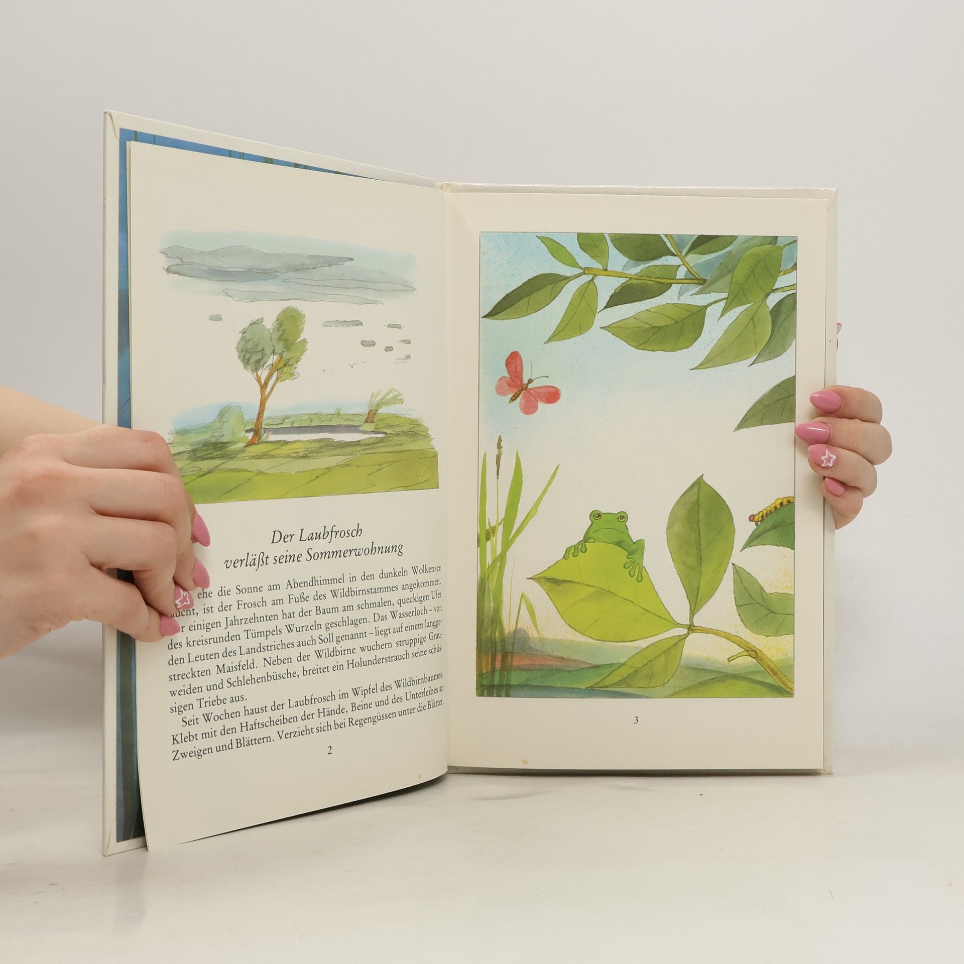Eine Erzählung über die Wanderung der Laubfrösche, farbenfroh illustriert.