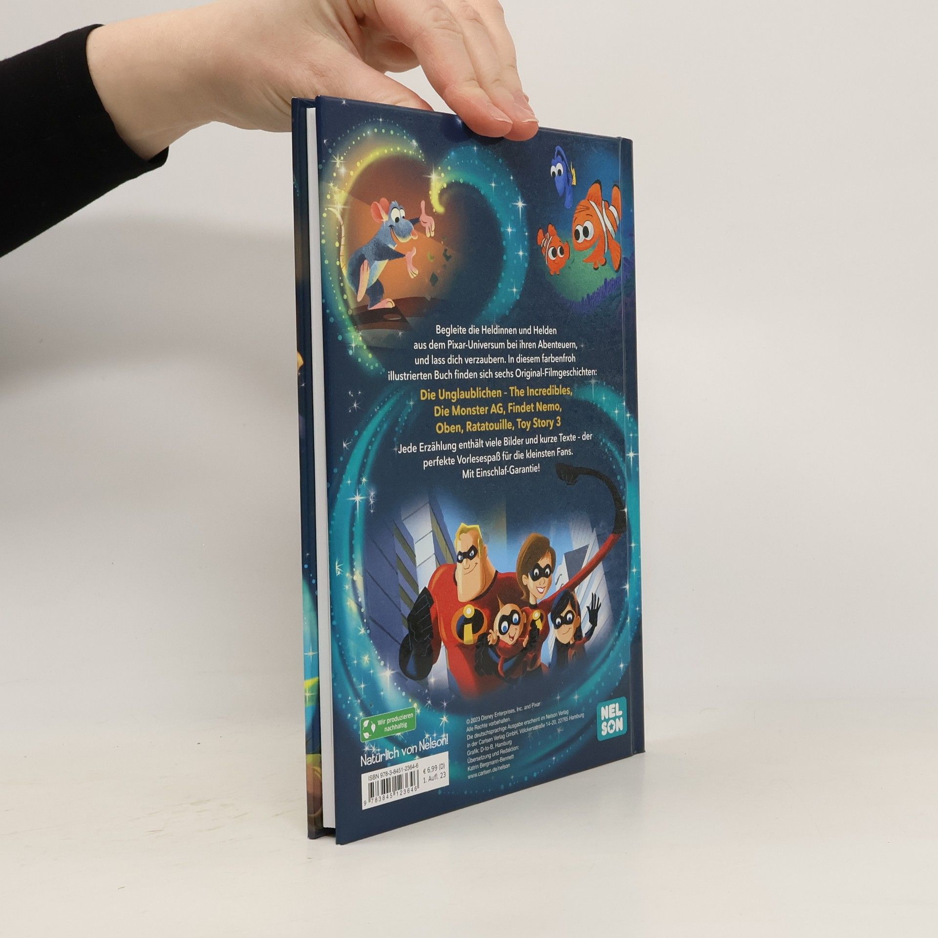 Disney für die kleinsten Fans ab 3 Jahren! Begleite die Heldinnen und Helden aus dem Pixar-Universum bei ihren Abenteuern und lass dich verzaubern. Dieses Buch enthält viele schöne Bilder und sechs Original-Filmgeschichten: Die Unglaublichen – The Incredibles Die Monster AG Findet Nemo Oben Ratatouille Toy Story 3 Die Filmgeschichten werden mit kurzen, altersgemäßen Texten nacherzählt – der perfekte Vorlesespaß für Kinder ab 3 Jahren. Gute-Nacht-Geschichten mit Einschlaf-Garantie!