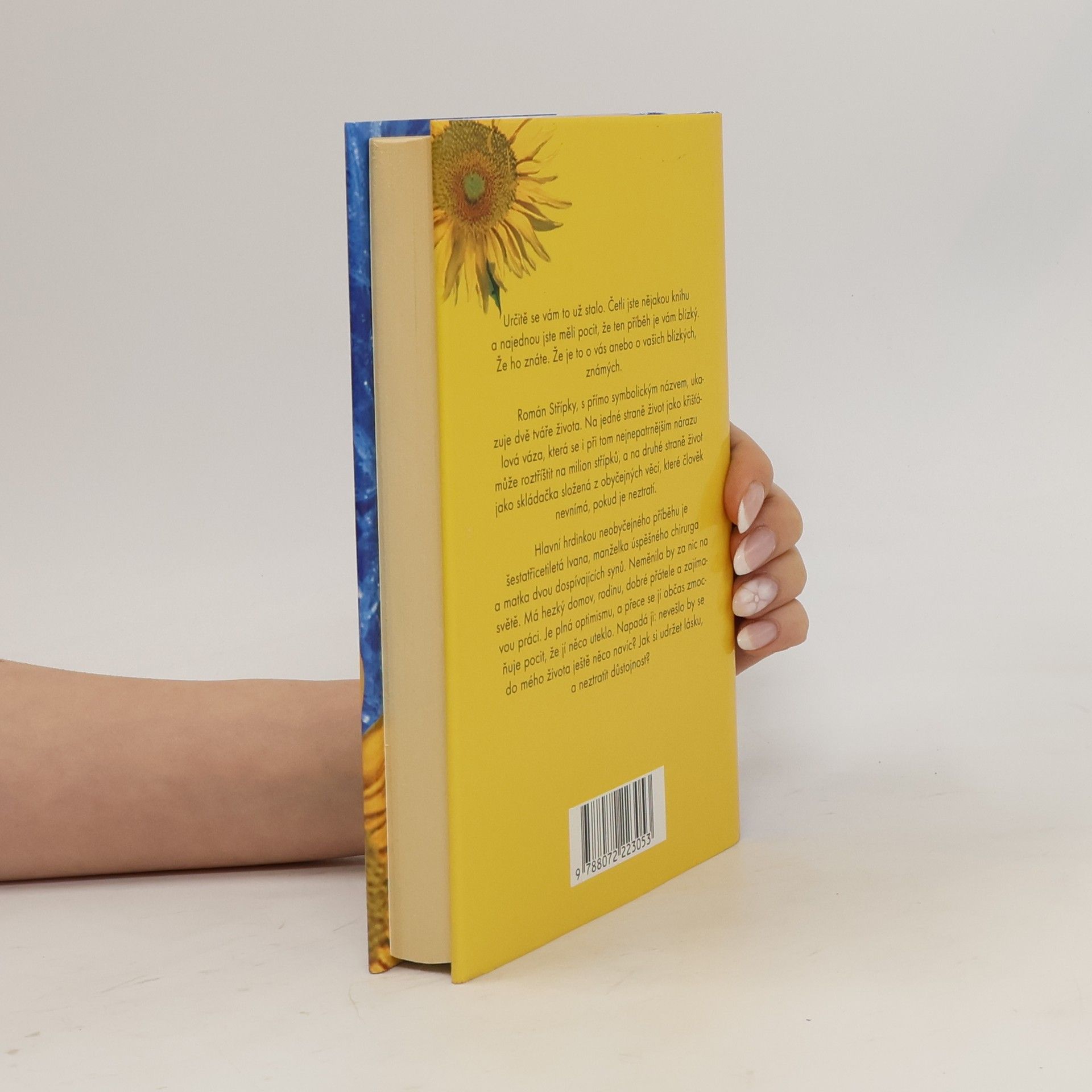 Román Střípky, s přímo symbolickým názvem, ukazuje dvě tváře života. Na jedné straně život jako křišťálová váza, která se i při tom nejnepatrnějším nárazu může roztříštit na milion střípků, a na druhé straně život jako skládačka složená z obyčejných věcí, které člověk nevnímá, pokud je neztratí. Hlavní hrdinkou neobyčejného příběhu je šestatřicetiletá Ivana, manželka úspěšného chirurga a matka dvou dospívajících synů. Neměnila by za nic na světě. Má hezký domov, rodinu, dobré přátele a zajímavou práci. Je plná optimismu, a přece se jí občas zmocňuje pocit, že jí něco uteklo. Napadá ji: nevešlo by se do mého života ještě něco navíc? Jak si udržet lásku, a neztratit důstojnost?