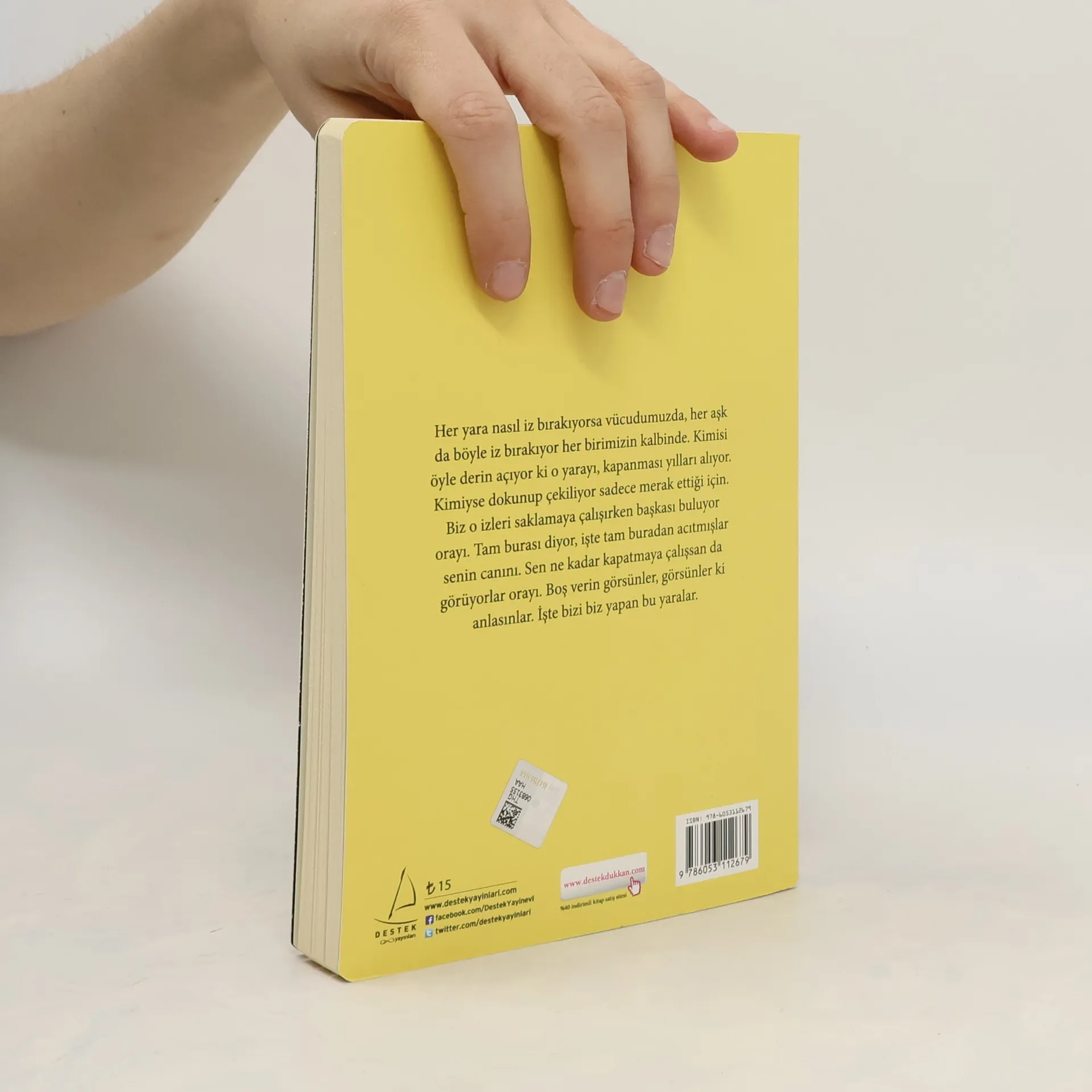 Her yara nasıl iz bırakıyorsa vücudumuzda, her aşk da böyle iz bırakıyor her birimizin kalbinde. Kimisi öyle derin açıyor ki o yarayı, kapanması yılları alıyor. Kimiyse dokunup çekiliyor sadece merak ettiği için. Biz o izleri saklamaya çalışırken başkası buluyor orayı. Tam burası diyor, işte tam buradan acıtmışlar senin canını. Sen ne kadar kapatmaya çalışsan da görüyorlar orayı. Boş verin görsünler, görsünler ki anlasınlar. İşte bizi biz yapan bu yaralar.