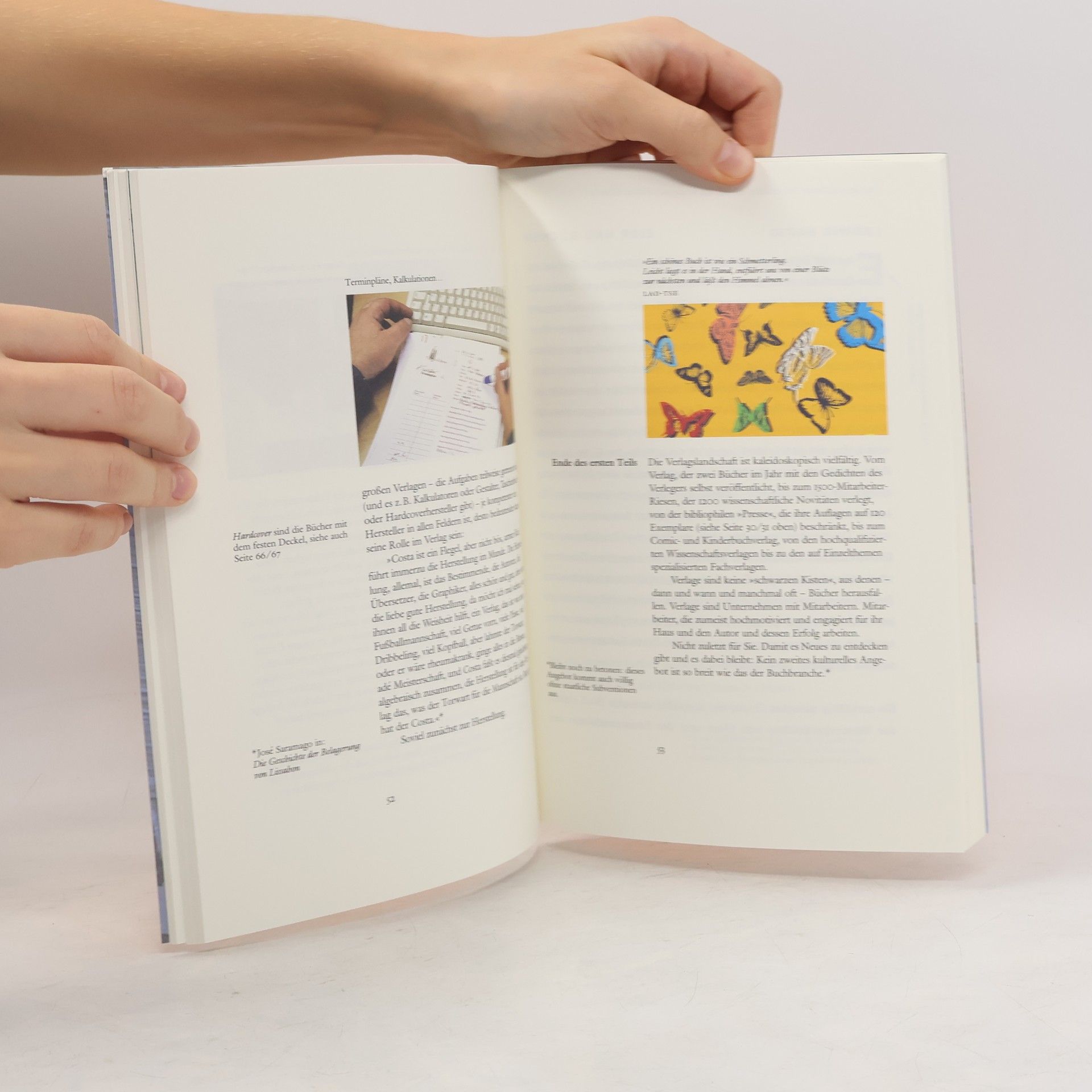 Wie werden aus Gedanken und Bildern der Autoren Bücher? Das Kapitel „Vom Verlegen" berichtet über den Entscheidungsweg im Verlag, über Lektorat, Herstellung und die Auslieferung. Was unterscheidet ein gut gemachtes Buch von einer Mogelpackung? Darauf gibt die „Kleine Warenkunde" kompetent Antwort und bietet zehn Regeln, mit denen Sie die Spreu vom Weizen trennen können. Sie lieben das Schöne? Auf einem Ausflug in die Buchgestaltung treffen Sie Kapitälchen und Kursive, Geschmack und Vorlieben. Außerdem wird über den Buchmarkt, feste Buchpreise, den Zusammenhang von Inhalt, Ökonomie und Ästhetik nachgedacht – kurz: „Wie kommen die Bücher auf die Erde?" ist ein schön gestaltetes Buch für Liebhaber, für alle, die wissen wollen, was ein „gutes" Buch ausmacht.