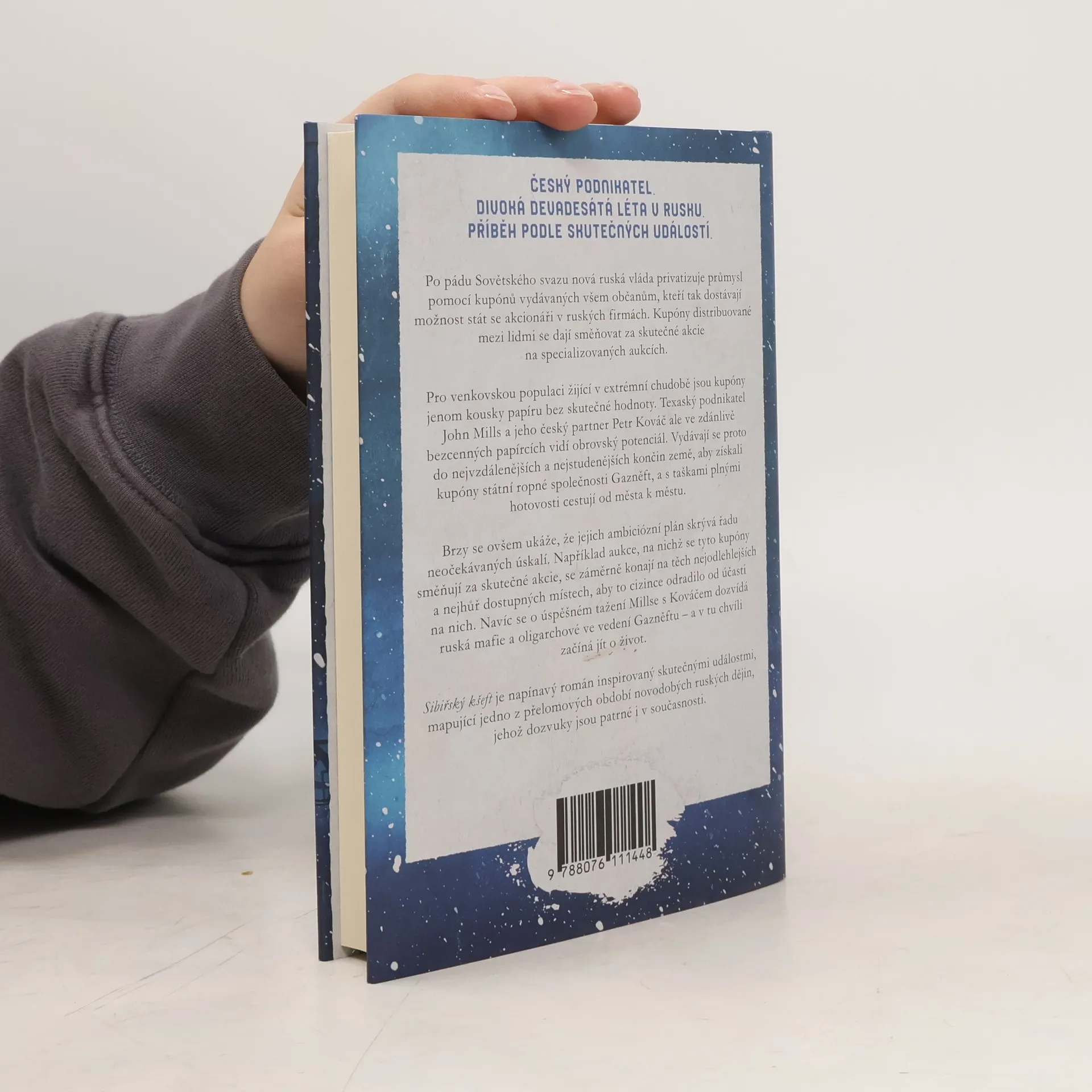 Český podnikatel. Divoká devadesátá léta v Rusku. Příběh podle skutečných událostí. Po pádu Sovětského svazu nová ruská vláda privatizuje průmysl pomocí kupónů vydávaných všem občanům, kteří tak dostávají možnost stát se akcionáři v ruských firmách. Kupóny distribuované mezi lidmi se dají směňovat za skutečné akcie na specializovaných aukcích. Pro venkovskou populaci žijící v extrémní chudobě jsou kupóny jenom kousky papíru bez skutečné hodnoty. Texaský podnikatel John Mills a jeho český partner Petr Kováč ale ve zdánlivě bezcenných papírcích vidí obrovský potenciál. Vydávají se proto do nejvzdálenějších a nejstudenějších končin země, aby získali kupóny státní ropné společnosti Gazněft, a s taškami plnými hotovosti cestují od města k městu. Brzy se ovšem ukáže, že jejich ambiciózní plán skrývá řadu neočekávaných úskalí. Například aukce, na nichž se tyto kupóny směňují za skutečné akcie, se záměrně konají na těch nejodlehlejších a nejhůř dostupných místech, aby to cizince odradilo od účasti na nich. Navíc se o úspěšném tažení Millse s Kováčem dozvídá ruská mafie a oligarchové ve vedení Gazněftu – a v tu chvíli začíná jít o život. Sibiřský kšeft je napínavý román inspirovaný skutečnými událostmi, mapující jedno z přelomových období novodobých ruských dějin, jehož dozvuky jsou patrné i v současnosti.