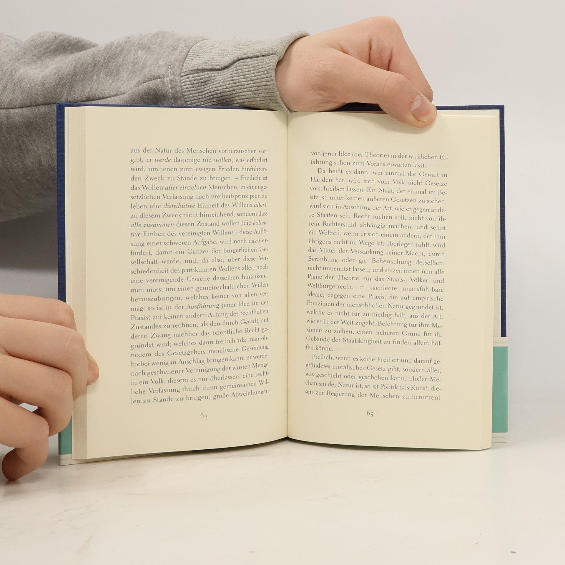 In Form eines Friedensvertrages wendet Kant in der Schrift 'Zum ewigen Frieden' seine Moralphilosophie auf die Politik an, um die Frage zu beantworten, ob und wie dauerhafter Frieden zwischen den Staaten möglich wäre. Für Kant ist er kein natürlicher Zustand zwischen Menschen, deshalb muss er gestiftet und abgesichert werden. Moderne Bedeutungen des Begriffs Frieden gehen entscheidend auf die hier vorgestellte Theorie zurück. Kants Alterswerk hat auch die Charta der Vereinten Nationen wesentlich inspiriert.