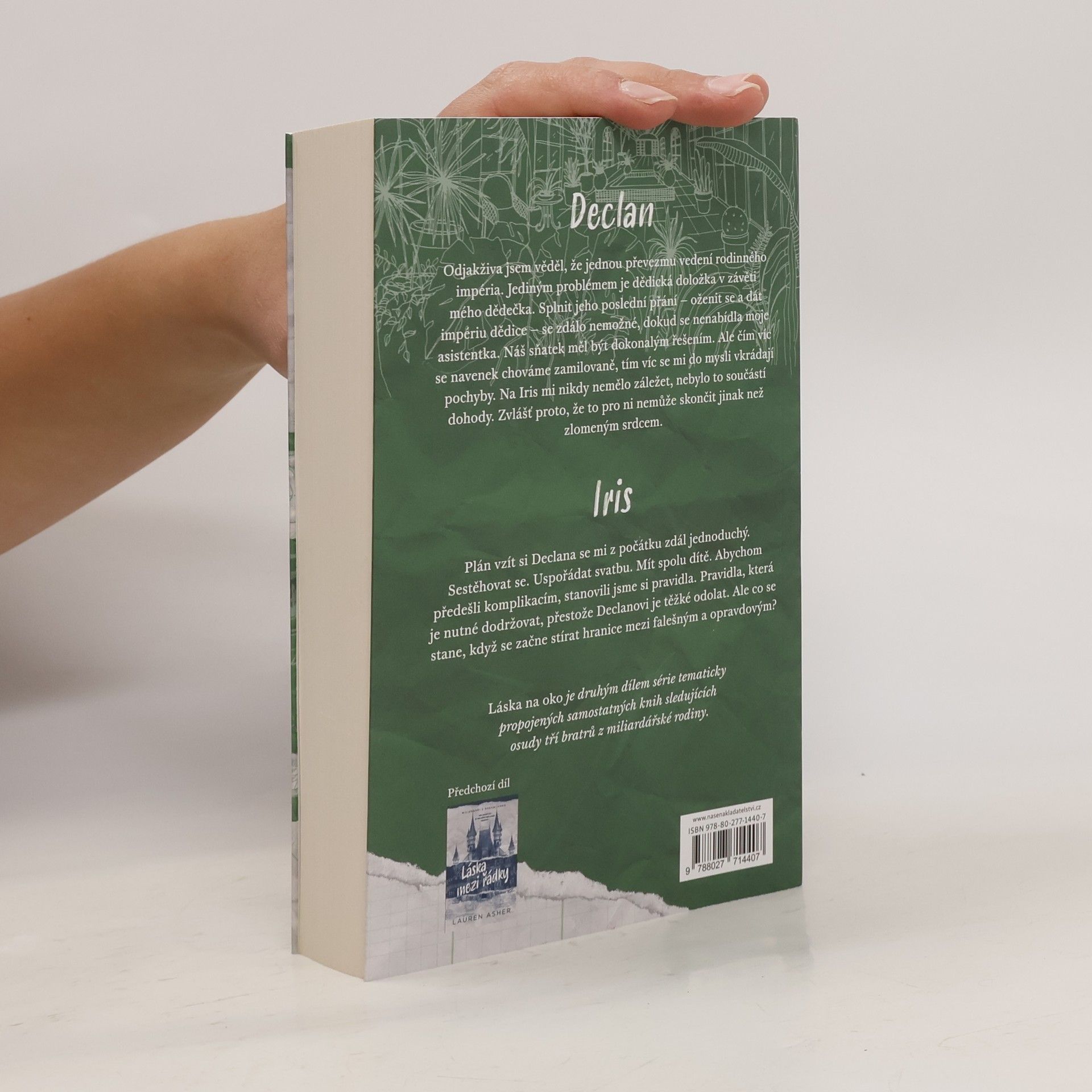Declan Odjakživa jsem věděl, že jednou převezmu vedení rodinného mediálního impéria. Jediný problém je dědická doložka v závěti mého dědečka. Splnit jeho poslední přání – oženit se a dát impériu dědice – se zdálo nemožné, dokud se nenabídla moje asistentka. Náš sňatek měl být dokonalým řešením mého největšího problému. Ale čím víc se navenek chováme zamilovaně, tím víc se mi do mysli vkrádají pochyby. Na Iris mi nikdy nemělo záležet, nebylo to součástí dohody. Zvlášť proto, že to pro ni nemůže skončit jinak než zlomeným srdcem. Iris Plán vzít si Declana se mi z počátku zdál jednoduchý. Sestěhovat se. Uspořádat svatbu. Mít spolu dítě. Abychom předešli komplikacím, stanovili jsme si pravidla. Pravidla, která je nutné dodržovat, přestože Declanovi je těžké odolat. Ale co se stane, když se začne stírat hranice mezi falešným a opravdovým? Láska na oko je druhým dílem série tematicky propojených samostatných knih, sledujících osudy tří bratrů z miliardářské rodiny.