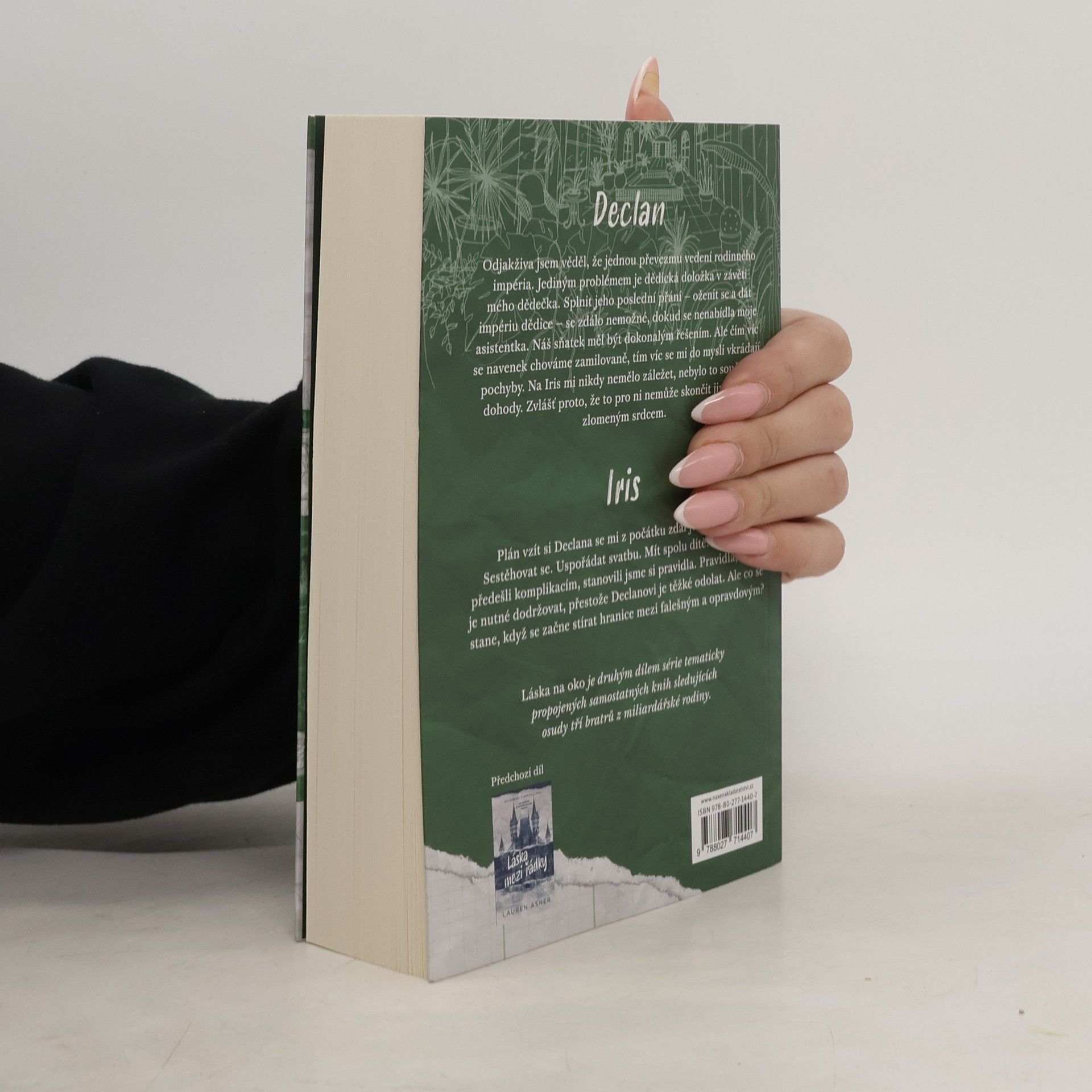 Declan Odjakživa jsem věděl, že jednou převezmu vedení rodinného mediálního impéria. Jediný problém je dědická doložka v závěti mého dědečka. Splnit jeho poslední přání – oženit se a dát impériu dědice – se zdálo nemožné, dokud se nenabídla moje asistentka. Náš sňatek měl být dokonalým řešením mého největšího problému. Ale čím víc se navenek chováme zamilovaně, tím víc se mi do mysli vkrádají pochyby. Na Iris mi nikdy nemělo záležet, nebylo to součástí dohody. Zvlášť proto, že to pro ni nemůže skončit jinak než zlomeným srdcem. Iris Plán vzít si Declana se mi z počátku zdál jednoduchý. Sestěhovat se. Uspořádat svatbu. Mít spolu dítě. Abychom předešli komplikacím, stanovili jsme si pravidla. Pravidla, která je nutné dodržovat, přestože Declanovi je těžké odolat. Ale co se stane, když se začne stírat hranice mezi falešným a opravdovým? Láska na oko je druhým dílem série tematicky propojených samostatných knih, sledujících osudy tří bratrů z miliardářské rodiny.