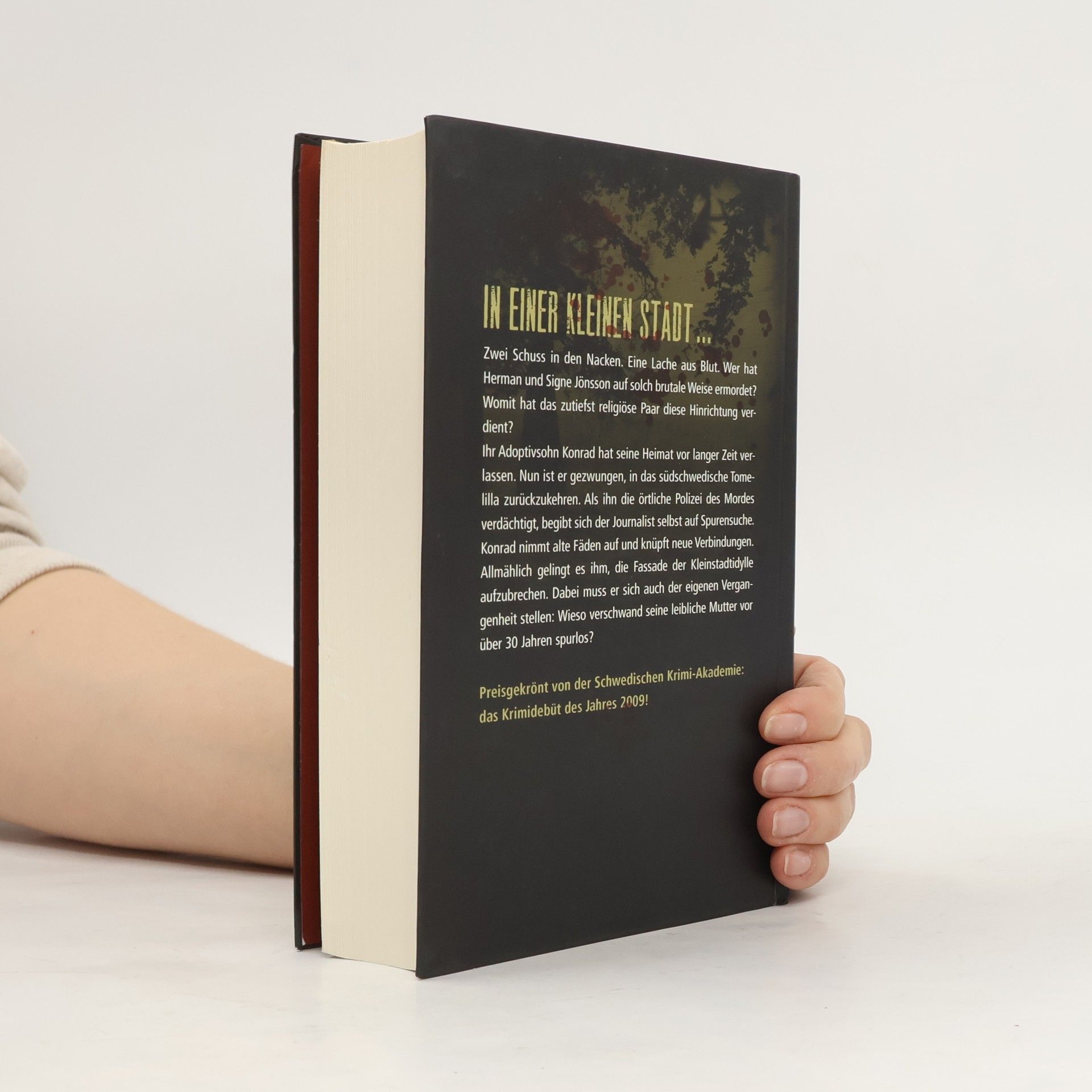 In einer kleinen Stadt: Zwei Schuss in den Nacken. Eine Lache aus Blut. Wer hat Herman und Signe Jönsson auf solch brutale Weise ermordet? Womit hat das zutiefst religiöse Paar diese Hinrichtung verdient? Ihr Adoptivsohn Konrad hat seine Heimat vor langer Zeit verlassen. Nun ist er gezwungen, in das südschwedische Tomelilla zurückzukehren. Als ihn die örtliche Polizei des Mordes verdächtigt, begibt sich der Journalist selbst auf Spurensuche. Konrad nimmt alte Fäden auf und knüpft neue Verbindungen. Allmählich gelingt es ihm, die Fassade der Kleinstadtidylle aufzubrechen. Dabei muss er sich auch der eigenen Vergangenheit stellen: Wieso verschwand seine leibliche Mutter vor über 30 Jahren spurlos? Preisgekrönt von der Schwedischen Krimi-Akademie: Das Krimidebüt des Jahres 2009!