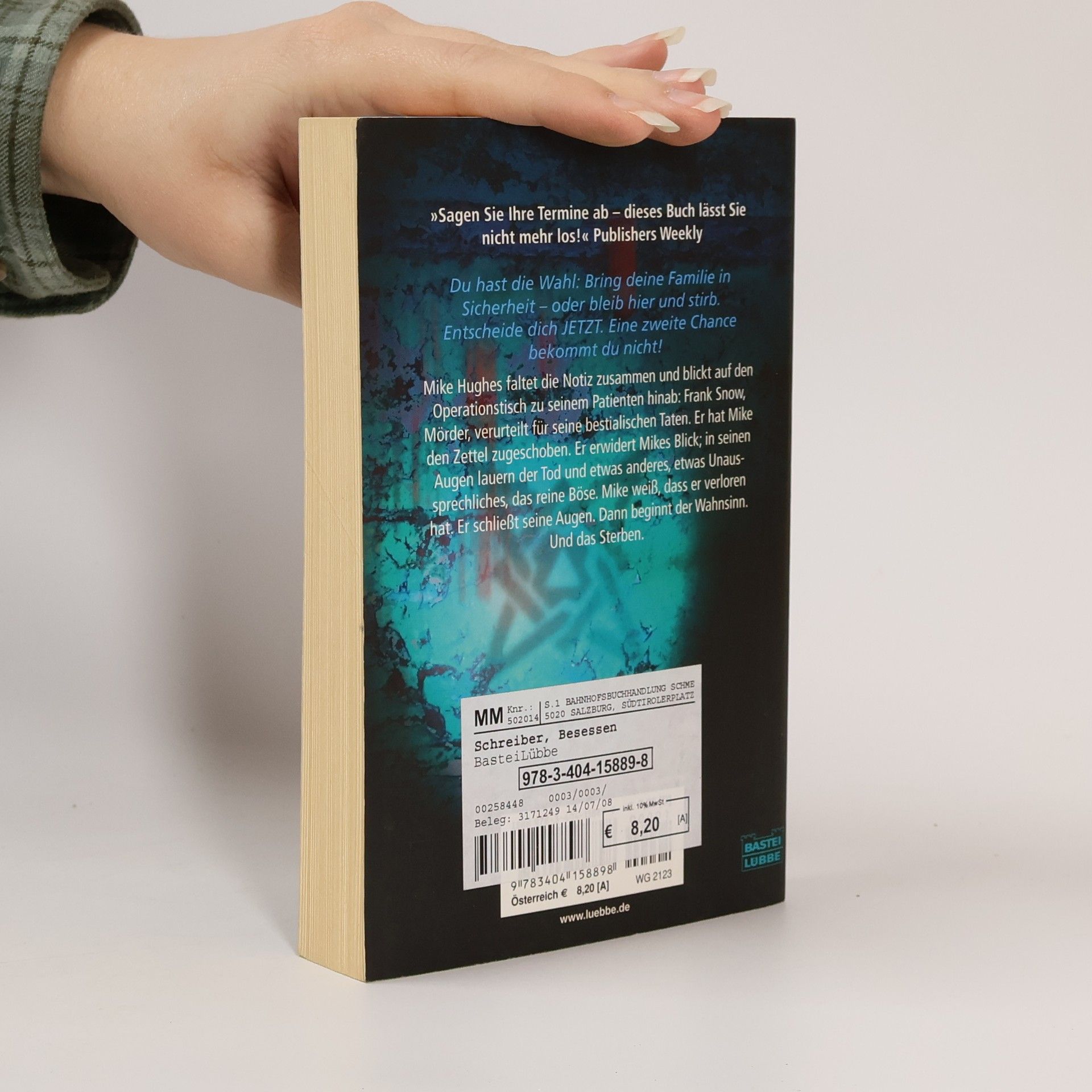Du hast die Wahl: Bring deine Familie in Sicherheit ? oder bleib hier und stirb. Entscheide dich JETZT. Eine zweite Chance bekommt du nicht! Mike Hughes faltet die Notiz zusammen und blickt auf den Operationstisch zu seinem Patienten hinab: Frank Snow, Mörder, verurteilt für seine bestialischen Taten. Er hat Mike den Zettel zugeschoben. Er erwidert Mikes Blick; in seinen Augen lauern der Tod und etwas anderes, etwas Unaussprechliches, das reine Böse. Mike weiß, dass er verloren hat. Er schließt seine Augen. Dann beginnt der Wahnsinn. Und das Sterben.