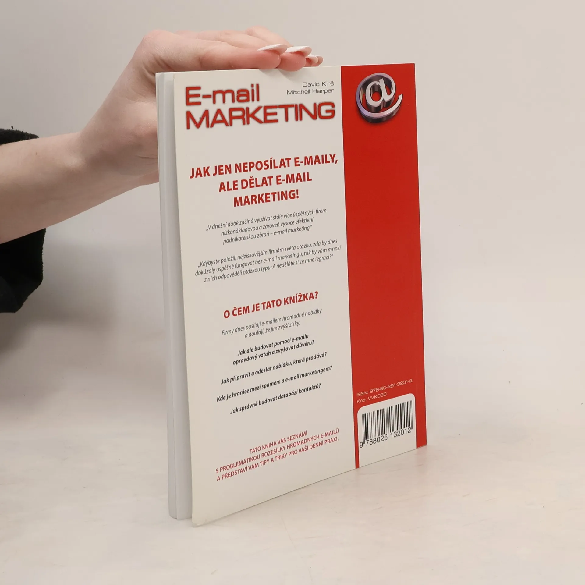 Zbraň pro podnikání v 21. století OBJEVTE TAJEMSTVÍ, JAK JEN NEPOSÍLAT E-MAILY, ALE OPRAVDU DĚLAT E-MAIL MARKETING! „V dnešní době začíná využívat stále více úspěšných firem nízkonákladovou a zároveň vysoce efektivní podnikatelskou zbraň – e-mail marketing. Nejziskovější firmy světa by dnes nedokázaly úspěšně fungovat bez e-mail marketingu.” Zkušení odborníci v knize odhalují, jak využívat e-mail marketing a hromadnou e-mail komunikaci k hýčkání vašich zákazníků a podpoře vaši značky. V ČEM VÁM TATO KNÍŽKA POMŮŽE? Firmy dnes posílají e-mailem hromadné nabídky a doufají, že jim zvýší zisky: * Jak ale budovat pomocí e-mailu opravdový vztah a zvyšovat důvěru zákazníků? * Jak připravit a odeslat nabídku, která prodává? * Kde je hranice mezi spamem a e-mail marketingem? * Jak správně budovat databázi kontaktů? TATO KNIHA VÁS SEZNÁMÍ S PROBLEMATIKOU E-MAIL MARKETINGU, JAK HO VYUŽÍT A NA CO SI DÁT POZOR. PŘEDSTAVÍ VÁM TAKÉ TIPY A TRIKY PRO VAŠI DENNÍ PRAXI.