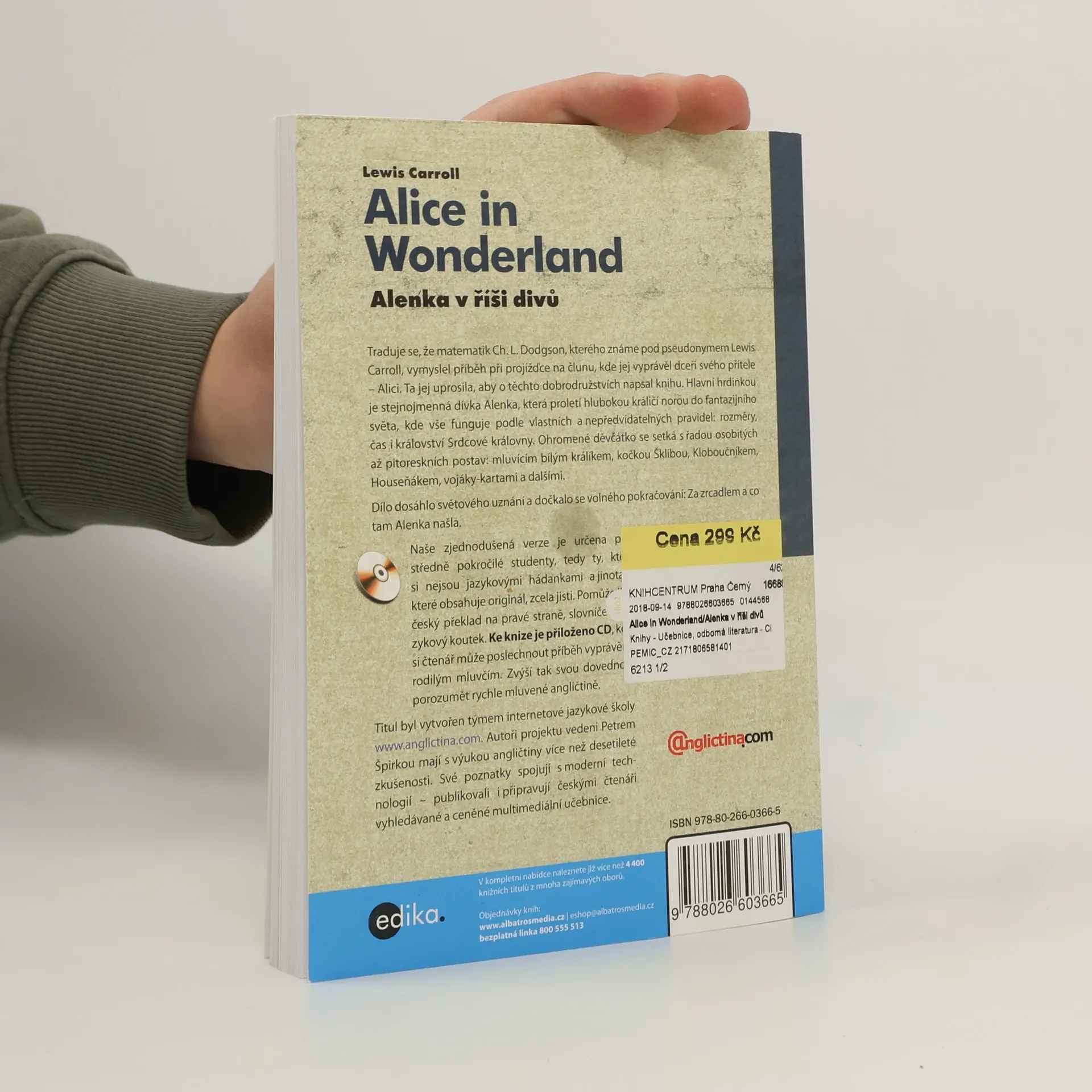 Říká se, že matematik Ch. L. Dodgson, kterého známe pod pseudonymem Lewis Carroll, vymyslel příběh při projížďce na člunu, kde jej vyprávěl dceři svého přítele - Alici. Ta ho uprosila, aby o dobrodružstvích napsal knihu. Naše zjednodušená verze je určena pro středně pokročilé, kteří si nejsou hádankami a jinotaji, jež obsahuje originál, zcela jisti. Pomůže jim i český překlad na pravé straně, slovníček i jazykový koutek.