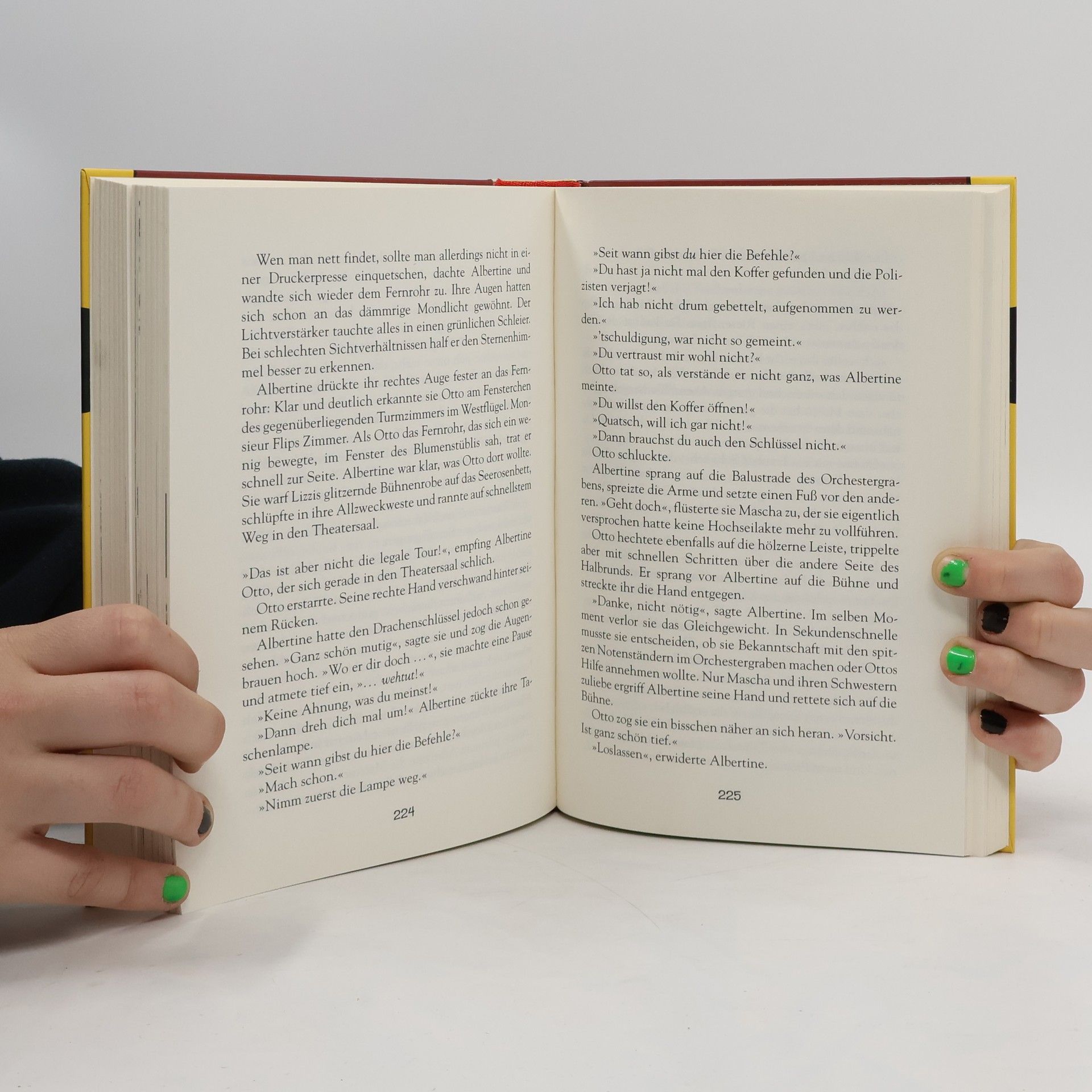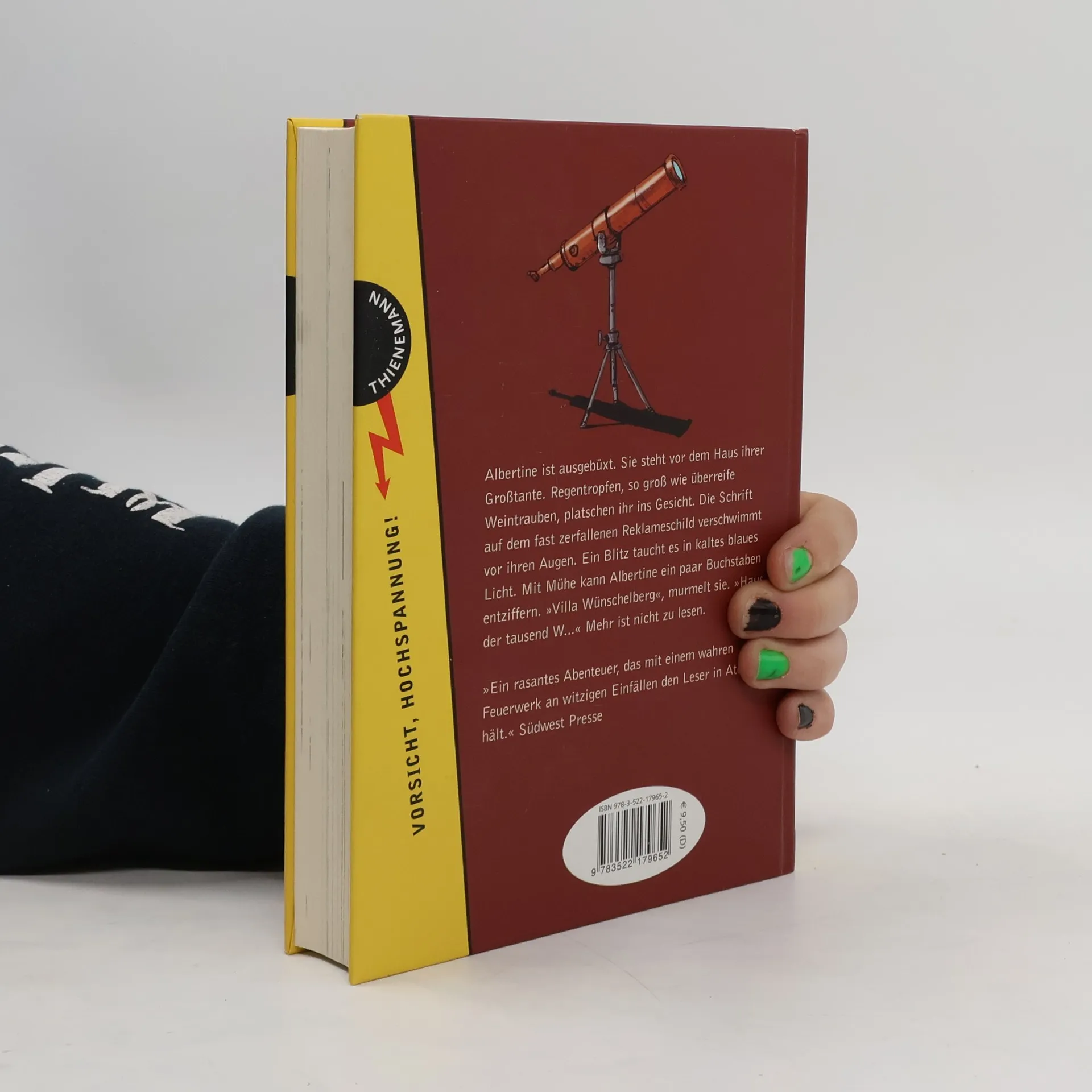 Albertine ist ausgebüxt. Sie steht vor dem Haus ihrer Großtante. Regentropfen, so groß wie überreife Weintrauben, platschen ihr ins Gesicht. Die Schrift auf dem fast zerfallenen Reklameschild verschwimmt vor ihren Augen. Ein Blitz taucht es in kaltes blaues Licht. Mit Mühe kann Albertine ein paar Buchstaben entziffern. "Villa Wünschelberg", murmelt sie. "Haus der tausend W..." Mehr ist nicht zu lesen.