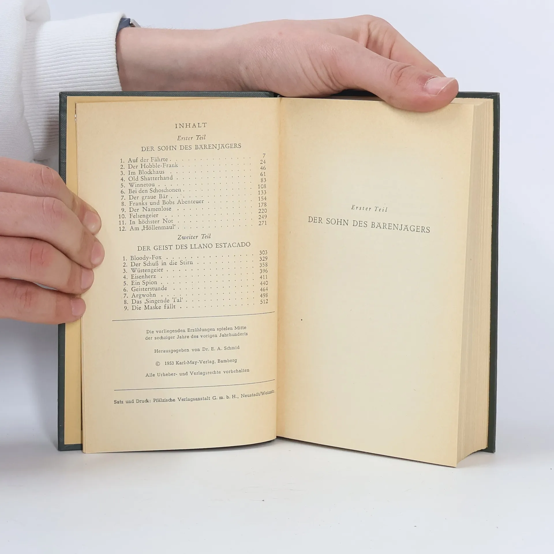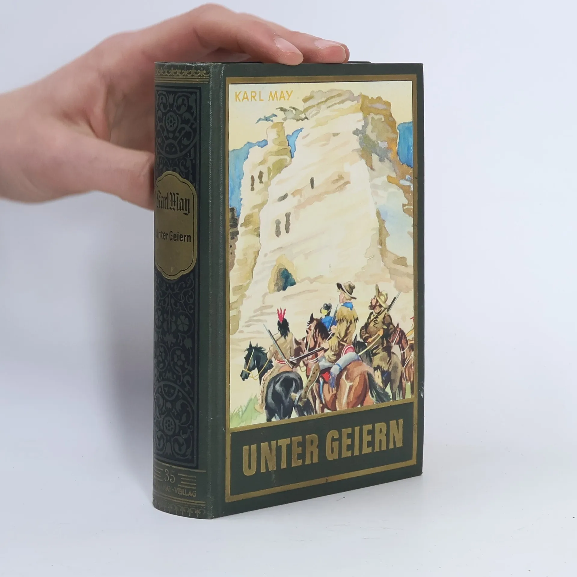 Unter Geiern spielen zwei fesselnde Wildwest-Erzählungen: unter den "Felsengeiern" der Rocky Mountains ("Der Sohn des Bärenjägers") und unter den "Wüstengeiern" der "Staked Plains" ("Der Geist des Llano Estacado"). Es gibt ein Wiedersehen mit Winnetou, Old Shatterhand und anderen berühmten Westmännern.Der Band enthält folgende Erzählungen:1.) Der Sohn des Bärenjägers2.) Der Geist des Llano Estacado
