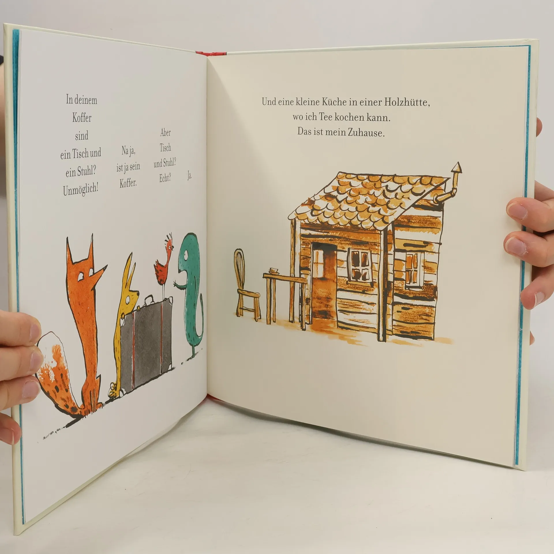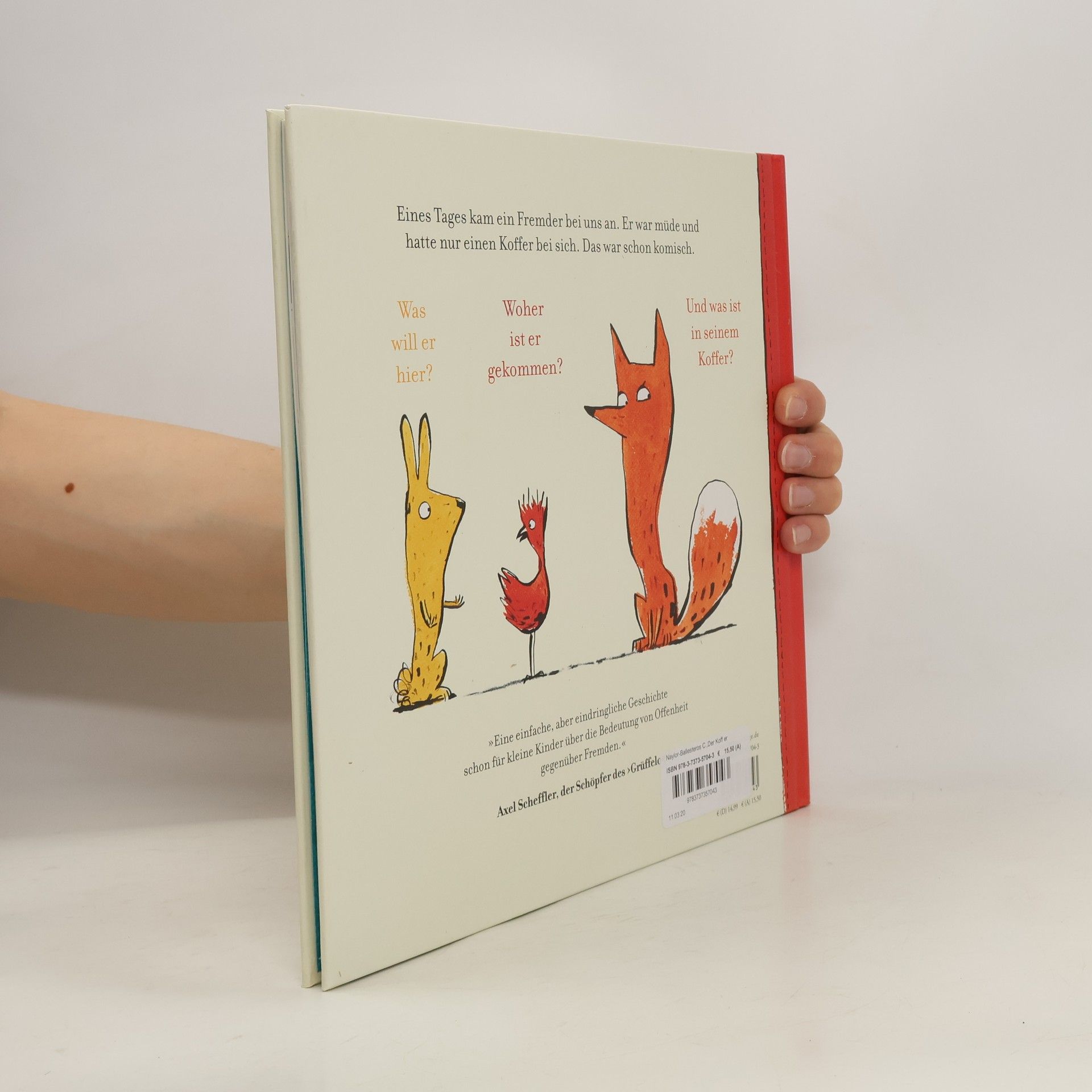Eine einfache und liebevolle Bilderbuchgeschichte zum Thema Toleranz und Mitmenschlichkeit. Eines Tages kam ein Fremder an. Er war müde und hatte nur einen Koffer bei sich. Das war schon komisch. Was will er hier? Woher ist er gekommen? Und was ist in seinem Koffer? Hase Vogel und Fuchs sind misstrauisch und glauben dem Fremden nicht, als er erzählt, dass er seine Lieblingstasse und auch sein Zuhause in seinem Koffer hat . Als der vor Erschöpfung einschläft, brechen sie aus lauter Neugier den Koffer auf. Sie finden tatsächlich eine zerbrochene Tasse und ein Photo von seinem Zuhause. Sie haben ein schlechtes Gewissen , kleben die Tasse und bauen eine Hütte für den Fremden. Und jetzt wollen sich alle besser kennenlernen. Eine Bilderbuchgeschichte, die schon kleinen Kindern erzählt, wie wichtig es ist, Fremden mit Offenheit zu begegnen.