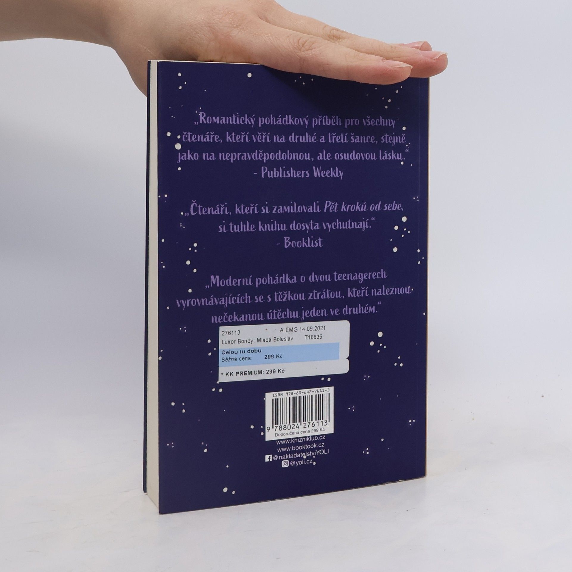Od autorek nezapomenutelného příběhu Pět kroků od sebe. Kyle a Kimberly jsou na střední škole dokonalým párem a plánují společnou budoucnost, dokud nedojde k tragické autonehodě, po které se Kyle probudí v nemocnici s poraněním mozku. Kimberly nehodu nepřežije. Nikdo v Kyleově okolí nerozumí tomu, čím si Kyle prochází. Až na Marley. Marley se snaží vypořádat s vlastní ztrátou, o které je přesvědčená, že ji zavinila. Když se jejich cesty protnou, Kyle má pocit, že v Marley konečně našel člověka, který pochopí vše, co doposud nikdo nedokázal. Když se společně snaží zahojit své rány, jejich vzájemné pouto i city sílí. Kyle ale nedokáže setřást pocit, že se schyluje k dalšímu tragickému okamžiku, který znovu obrátí jeho život naruby...