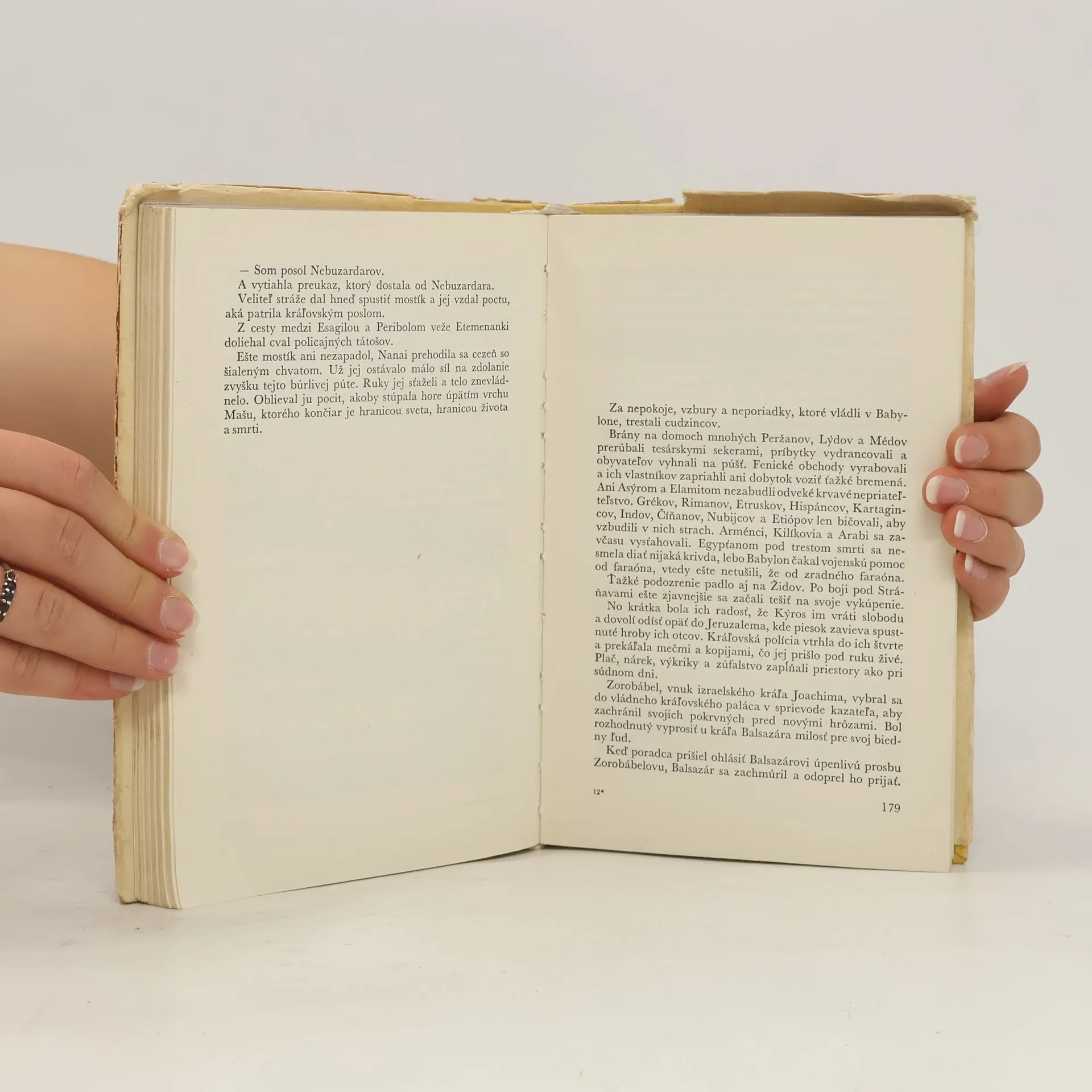 historický román o rozpade chaldejskej ríše. Je to krajina medzi Eufratom a Tigrisom. Žijú tu ľudia, ktorí majú radi svoju krajinu, majú svojho boha a hlavné mesto Babylon. K takýmto ľuďom patrí starý Hamadan a jeho dcéra Nanai. Hrozí im nebezpečenstvo z Perzskej ríše, kde vládne kráľ Kýros. Chaldejci majú neschopného kráľa, mladého smilníka, majú schopného veliteľa vojsk. Nanai si vysnívala, že chce žiť v Babylone, a miluje Nebuzardara. Esagila je kňazské mesto v Babylone, uctievajú svojho boha, chcú zvrhnúť kráľa, uctievajú čas kvetov. Vtedy predávajú nevinnosť dievčat boháčom. Nanai ušla za Nebuzardarom, lebo ju predali. ..........