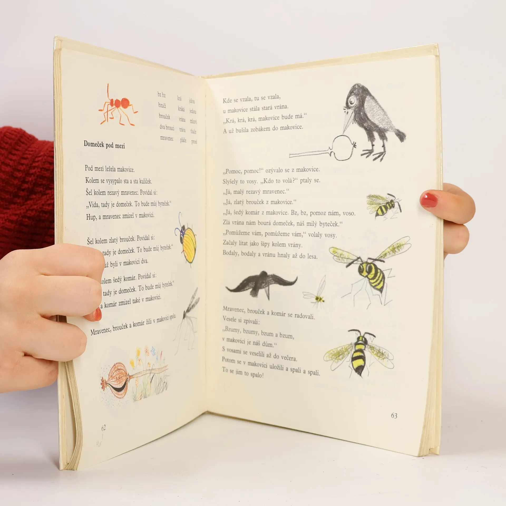 Učebnice obsahuje slabiky a slova pro nácvik uvědomělého čtení, dětské básně, říkadla a krátké příběhy s častou frekvencí přímé řeči. Slabikář byl oceněn Zlatou stuhou 1993 a téhož roku získal i Cenu Comeniana.