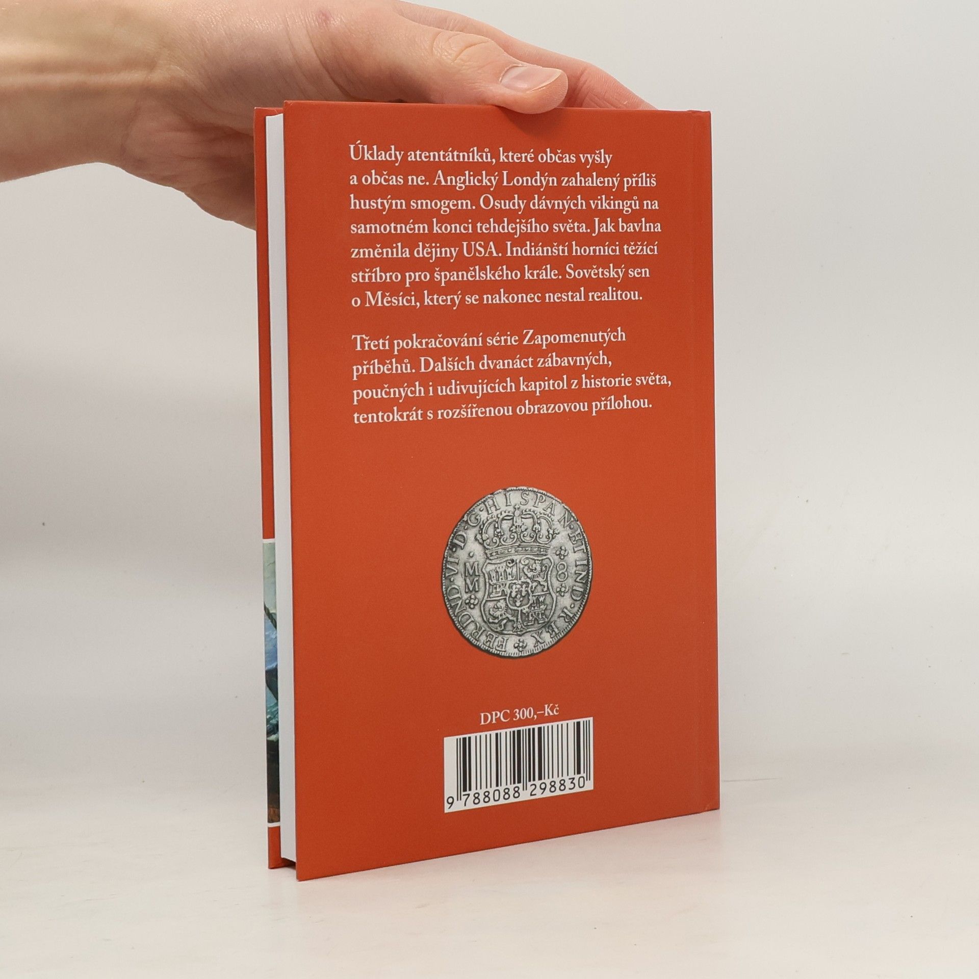 Třetí pokračování série Zapomenutých příběhů. Dalších dvanáct zábavných, poučných i udivujících kapitol z historie světa. Londýn zahalený příliš neprůhledným smogem. Osudy vikingů na samotném konci známého světa. Agent, který vodil za nos Třetí říši, a ještě za to od ní dostal vyznamenání. Jak bavlna změnila dějiny světa obecně a USA zvláště. Hora plná pohádkového bohatství. A lidé, kteří za něj zaplatili cenu nejvyšší. Pátrání po kostech svrženého krále. Sovětský sen o přistání na Měsíci. A na závěr něco jasného a zářivého. Až moc zářivého, jak už to u fyziky bývá. Na přání čtenářů – velmi podstatně rozšířená barevná příloha, cca čtyřnásobek proti Zapomenutým příběhům 2.
