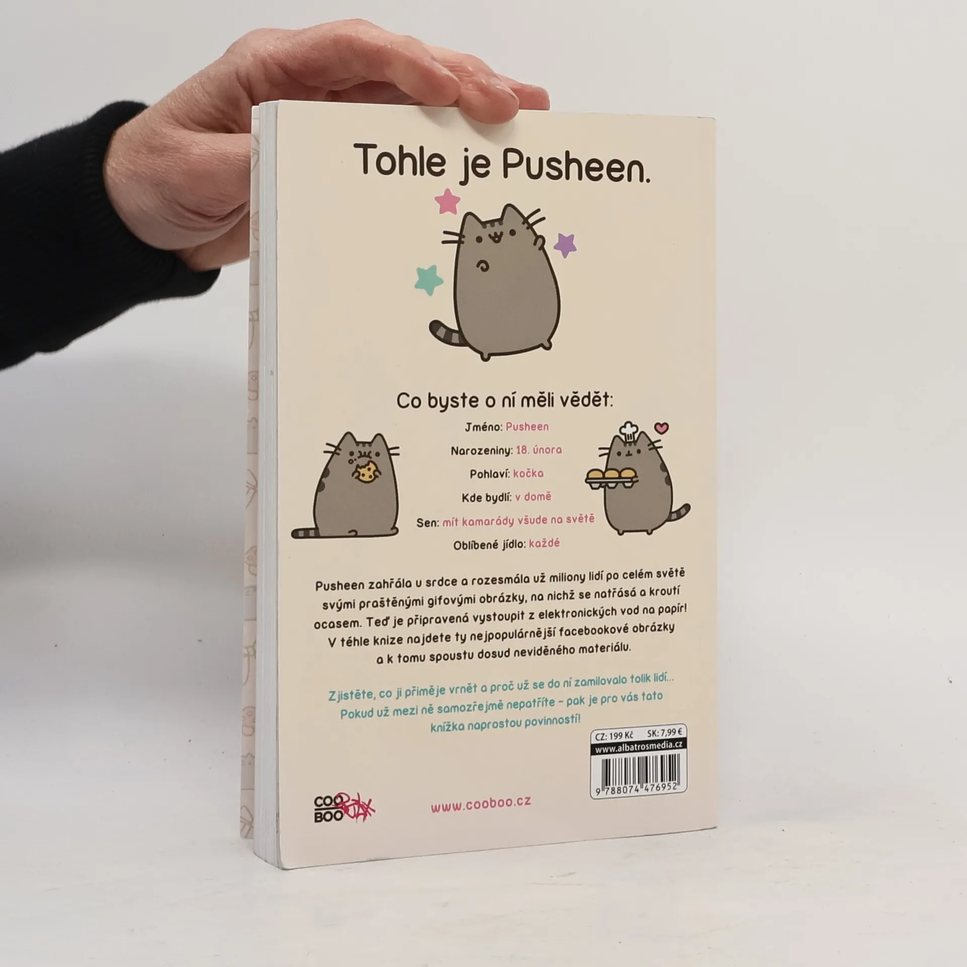 Pusheen zahřála u srdce a rozesmála už miliony lidí po celém světě svými praštěnými gifovými obrázky, na nichž se natřásá a kroutí ocasem. Teď je připravená vystoupit z elektronických vod na papír! V téhle knize najdete ty nejpopulárnější facebookové obrázky a k tomu spoustu dosud neviděného materiálu. Zjistěte, co ji přiměje vrnět a proč už se do ní zamilovalo tolik lidí… Pokud už mezi ně samozřejmě nepatříte – pak je pro vás tato knížka naprostou povinností!