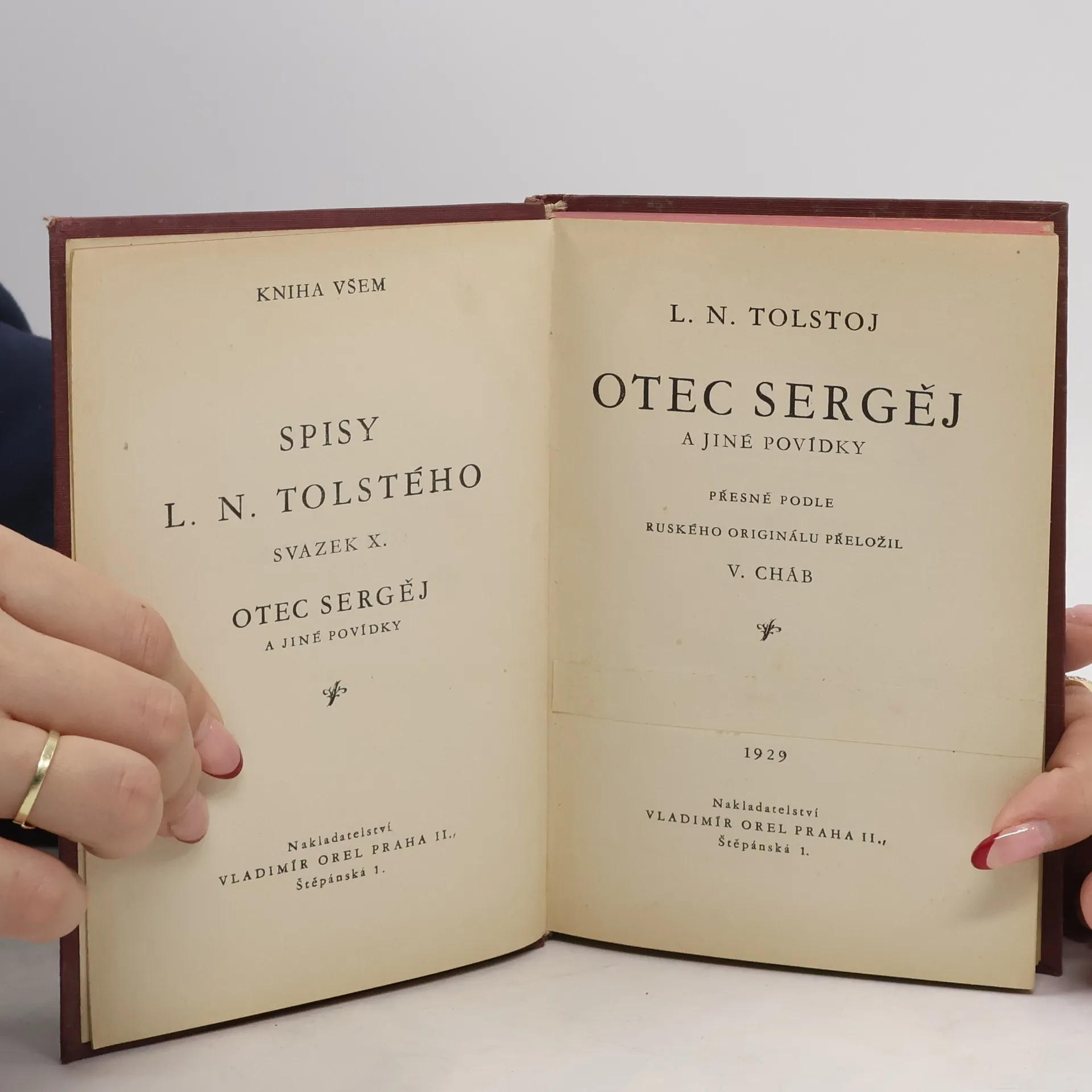 Cílevědomý a schopný kníže Stepan Kasatskij se dozvídá, že jeho snoubenka bývala milenkou cara Mikuláše I., toto zjištění jej vrhá na duchovní cestu - do kláštera, kde se stává mnichem. Ani zde (později již jako Otec Sergěj) však nenachází klid a je vystavován pokušení i svým ambicím a pýše. Rozhoduje se proto uchýlit do poustevny, kde však nadále bojuje s pochybnostmi o víře a svou tělesnou žádostivostí následně umocněnou příjezdem rozvedené paní Makovkinové, která se se svými známými vsází, že jej svede.. Kromě titulní povídky obsahuje kniha ještě pět dalších krátkých povídek.
