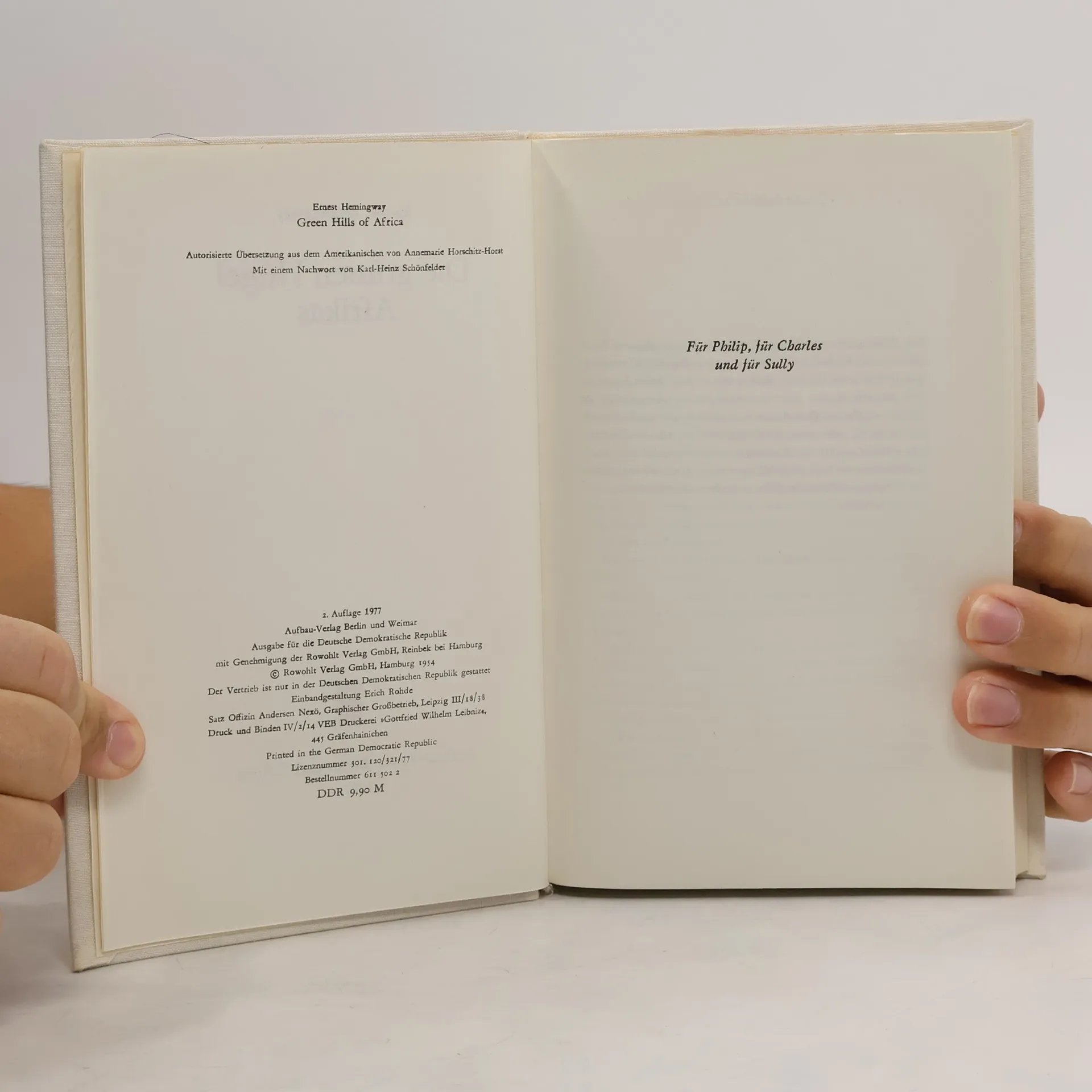 Die grünen Hügel Afrikas, Ernest Hemingway
