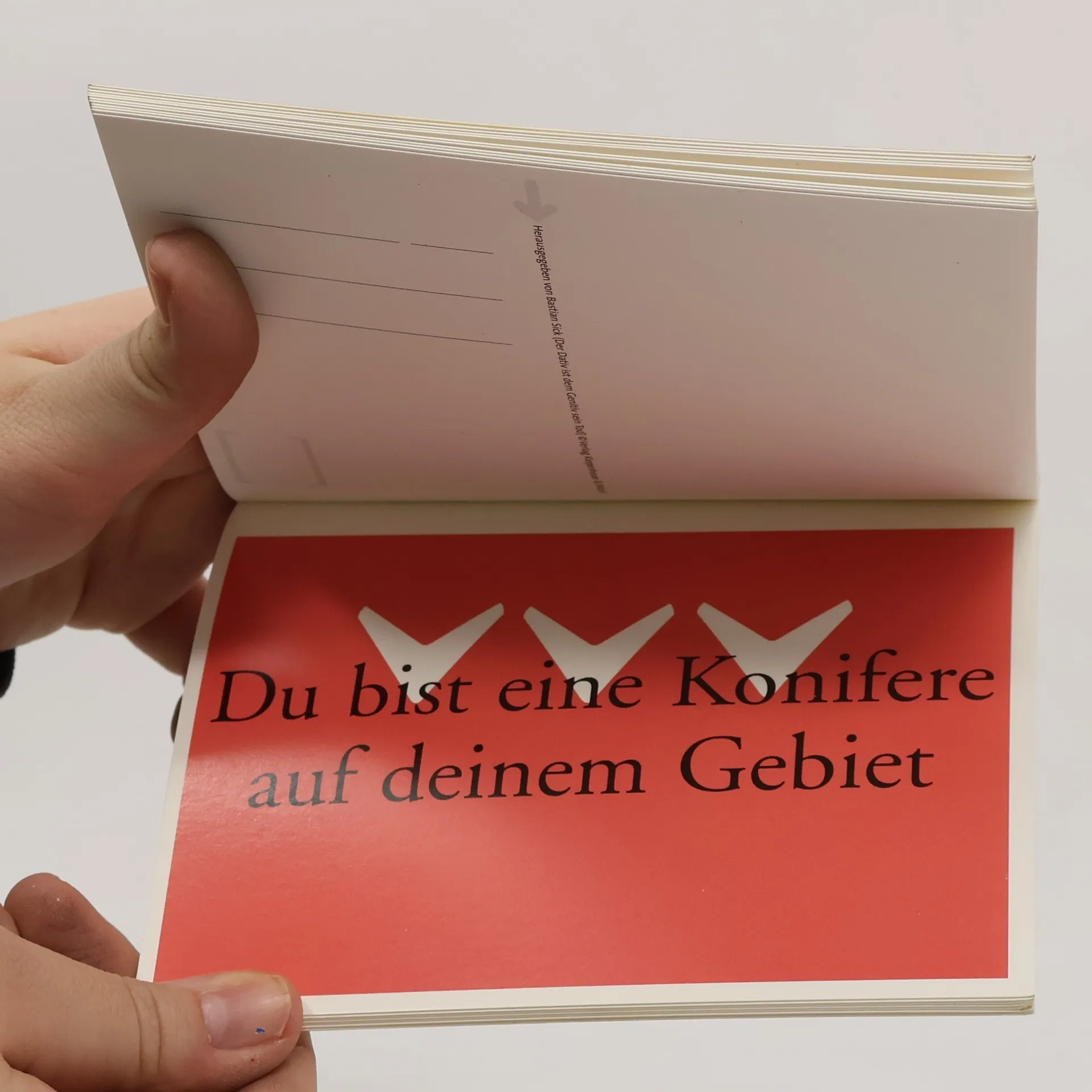 Verschicken Sie schon oder überlegen Sie noch? Die besten verdrehten Sprichwörter auf Postkarten. Dass Sprache niemals langweilig ist, hat Bastian Sick längst bewiesen. Und sie bringt uns zum Lachen. Dabei geht es nicht nur um Fehler. Komisch wird es, wenn es aus uns heraussprudelt, wir nur ein paar Wörter verdrehen und ein völlig neuer Sinn entsteht oder eben auch gar keiner. Bastian Sicks Sammlung verdrehter Sprichwörter ist_ Zu wahr, um schön zu sein._ Jeder kennt es: Da sucht man nach der passenden Redewendung und schon sieht man vor lauter Wald die Bäume nicht. Schnell sind die falschen Sätze ausgesprochen, sie kommen einem böhmisch vor und man steht da wie der Ochs auf dem Berg. Seit Jahren sammelt er die lustigsten Versprecher und Aussetzer. Besonders gefährdet sind die Sprichwörter: Eulen nach Athen tragen – warum ausgerechnet Eulen? Gibt es da nicht viele Säulen? Und will man nicht gerade sagen, dass etwas total unnötig ist? Aus dem Trumpf im Ärmel wird schnell ein Triumph und aus dem Hansdampf ein Hanswurst in allen Gassen. Die besten verdrehten Sprichwörter können Sie ab sofort als lustige Postkarte verschicken. Und glauben Sie uns, Anlässe gibt es genug. Freuen Sie sich auf diese Sammlung wie ein Schneehase – oder eine Honigkönigin.
